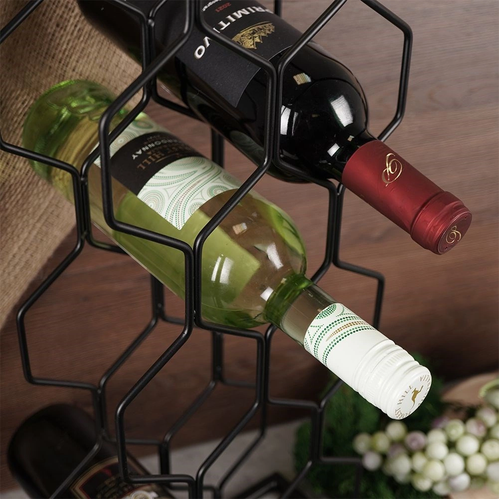Ce porte-bouteilles moderne à structure hexagonale peut accueillir jusqu’à 8 bouteilles et les conserve à l’horizontale afin de maintenir les bouchons naturellement humides. Son design minimaliste noir s’accorde facilement avec différents styles d’intérieur, de la cuisine moderne au bar à domicile.