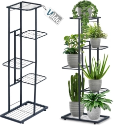 Ce support élégant en métal pour plantes, d’une hauteur de 96 cm, offre cinq étagères séparées pour une disposition claire et décorative des plantes d’intérieur, cactus, grimpantes et objets déco. La finition noire mate au style industriel loft s’intègre facilement dans un salon moderne, une entrée, un bureau ou sur un balcon couvert.
