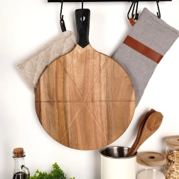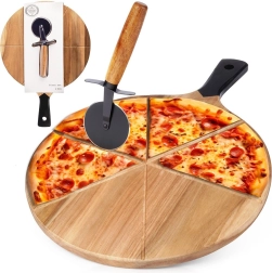 • Matériaux de qualité : planche en bois d’acacia, coupe-pizza en acier inoxydable avec manche en bois.