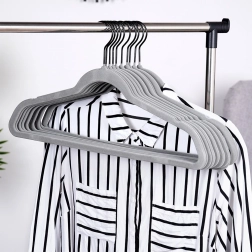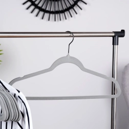 Gardez votre dressing parfaitement ordonné. Le profil fin des cintres économise de la place, tandis que la surface en velours protège les tissus et évite la chute des vêtements. Le crochet pivotant facilite la suspension dans n’importe quelle direction — idéal à la maison comme en boutique.