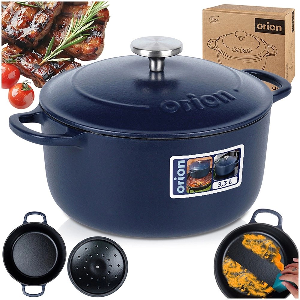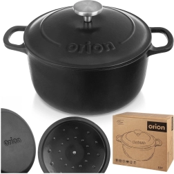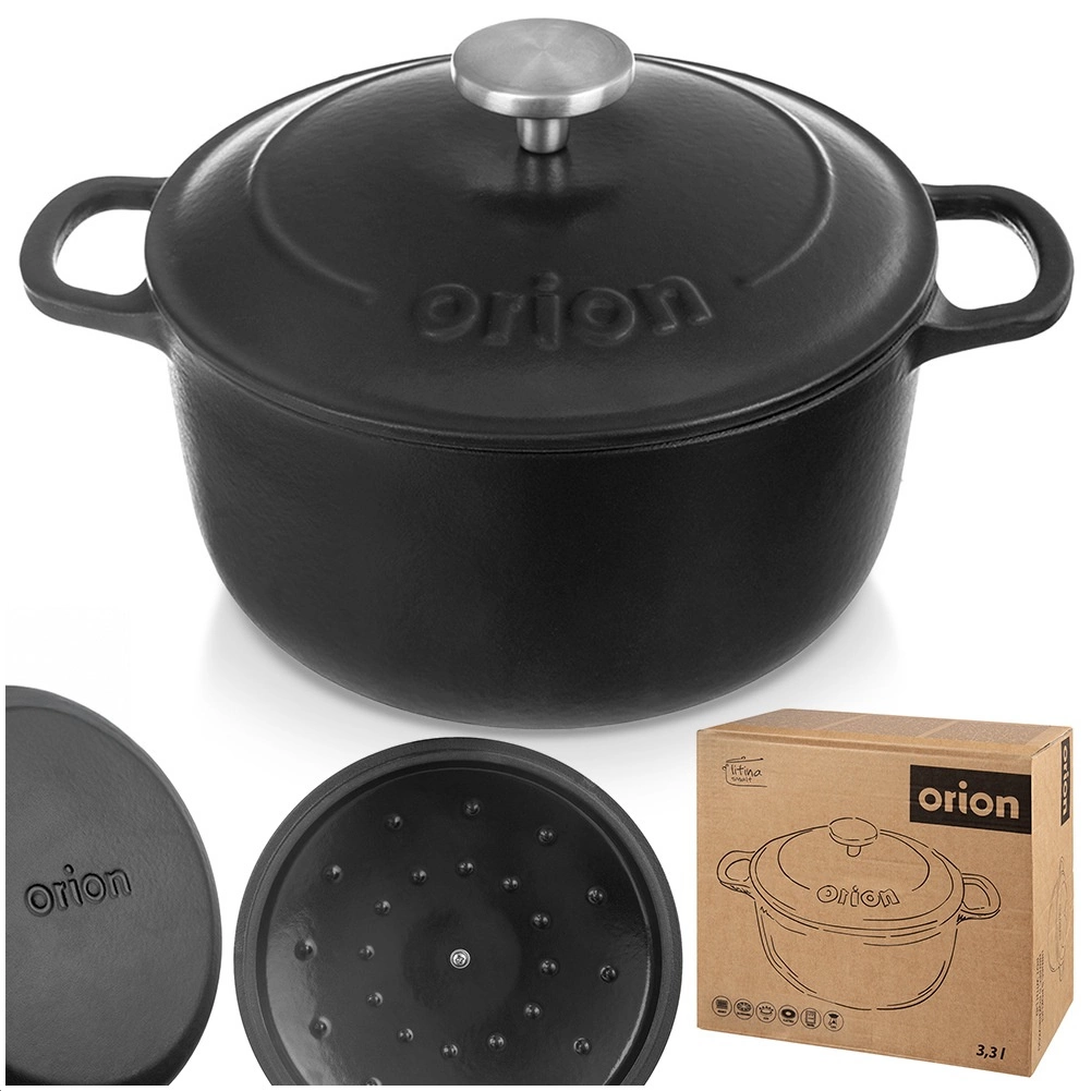Cocotte en fonte universelle avec couvercle, capacité 3,3 l, pour la cuisine quotidienne comme pour les mijotés lents. Grâce à une répartition homogène de la chaleur, une excellente rétention thermique et une résistance jusqu’à 250 °C, elle est idéale pour soupes, goulaschs et rôtis. L’intérieur émaillé facilite la cuisson, le service et le nettoyage, tandis que les poignées latérales robustes et le bouton de couvercle en inox assurent une manipulation sûre. Qualité éprouvée de la marque ORION.