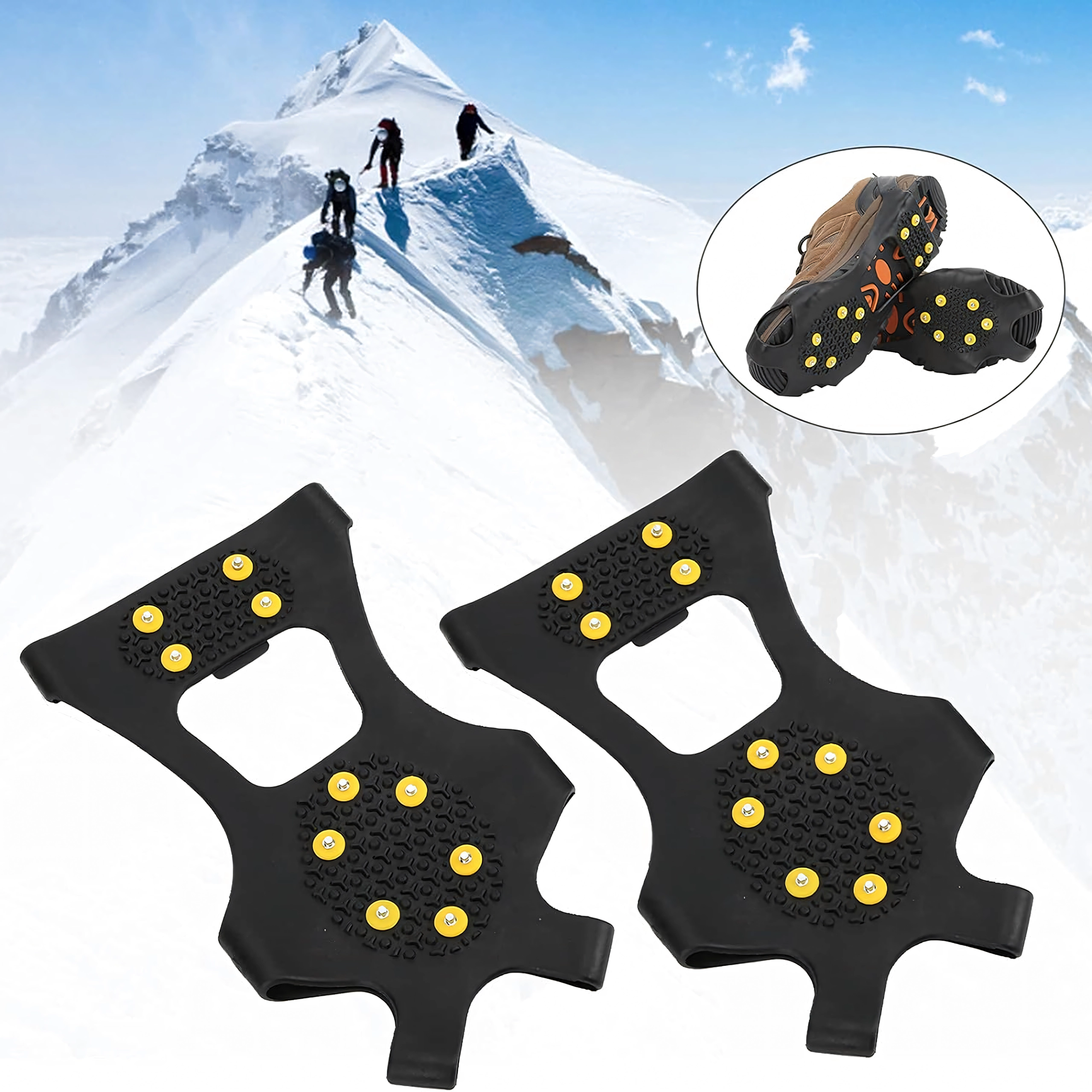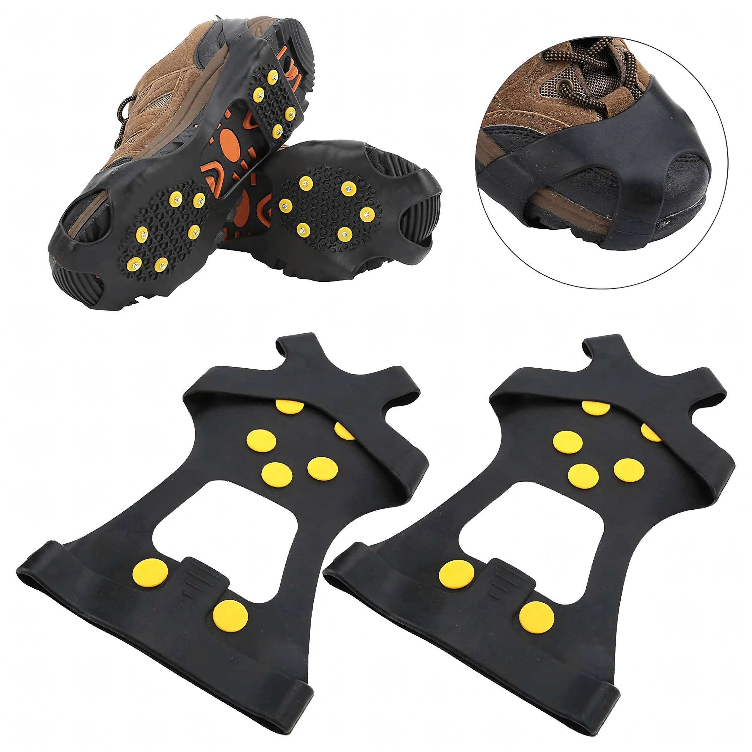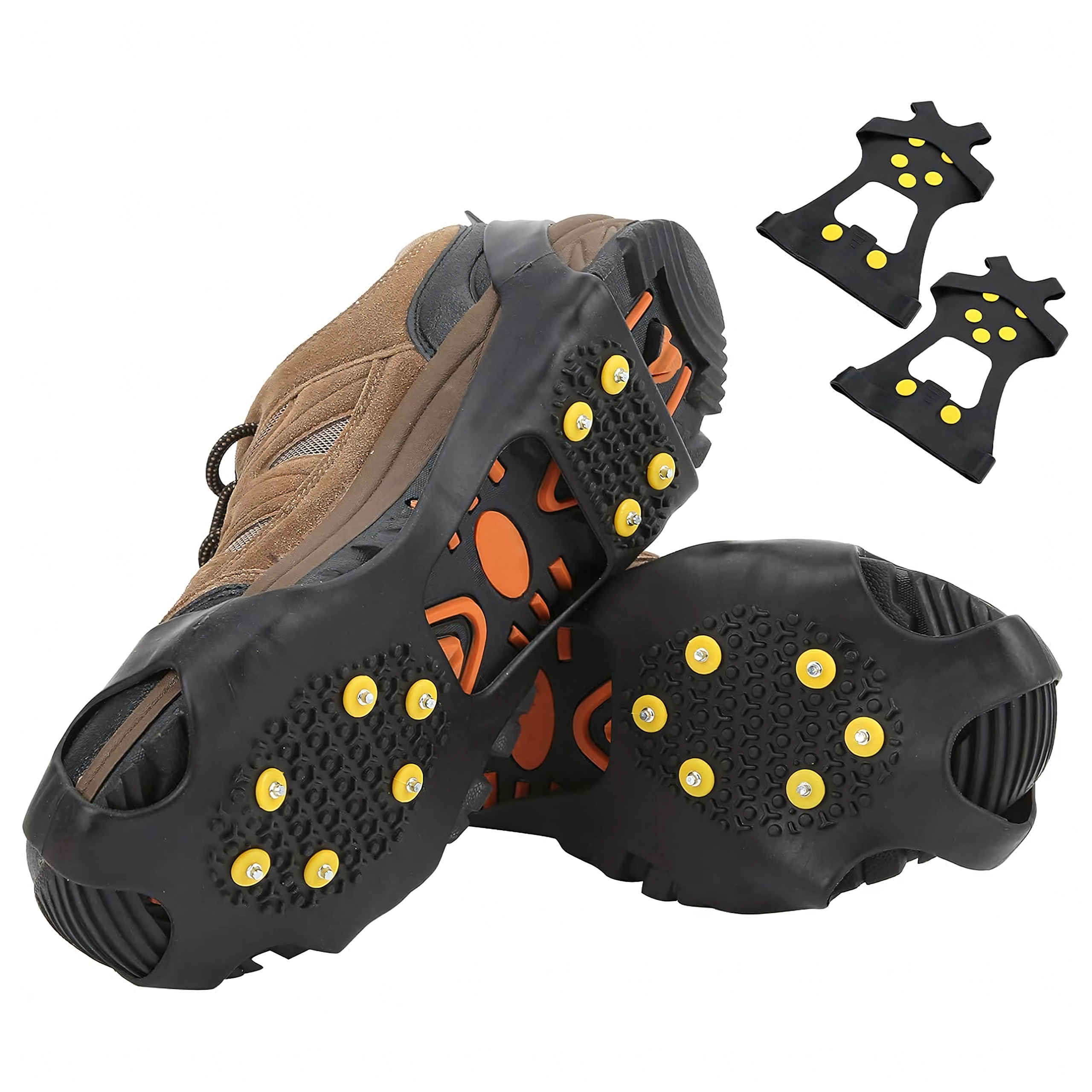 Crampons antidérapants fiables avec pointes métalliques pour une marche sûre sur la neige, la glace et la boue. Fabriqués en caoutchouc TPE résistant et en métal, ils offrent une excellente adhérence, une stabilité et un enfilage facile. 10 pointes métalliques assurent une sécurité à chaque pas ; les crampons sont légers, élastiques et compacts – idéals pour la randonnée, le travail en extérieur et la marche hivernale au quotidien.