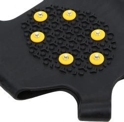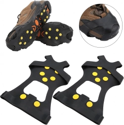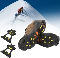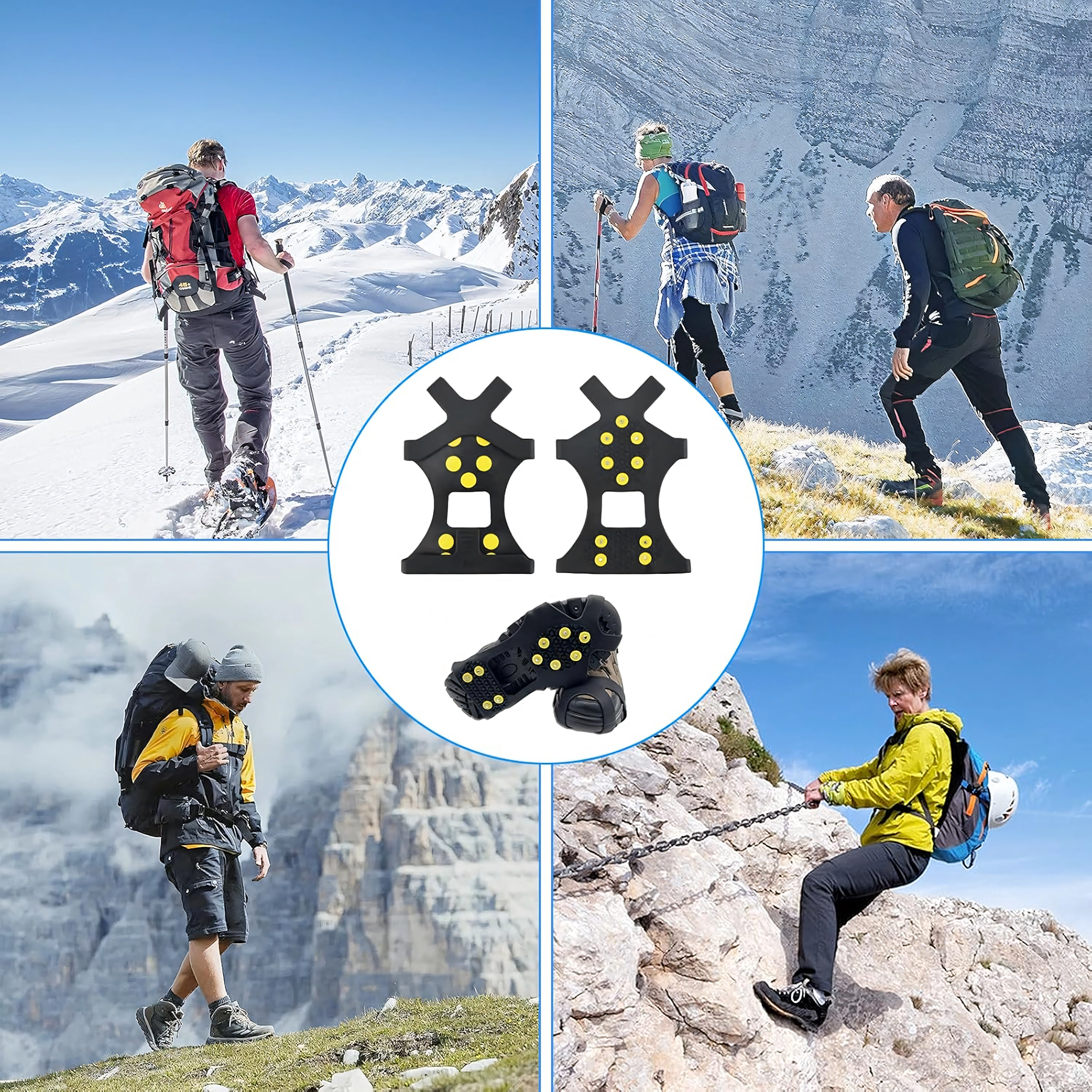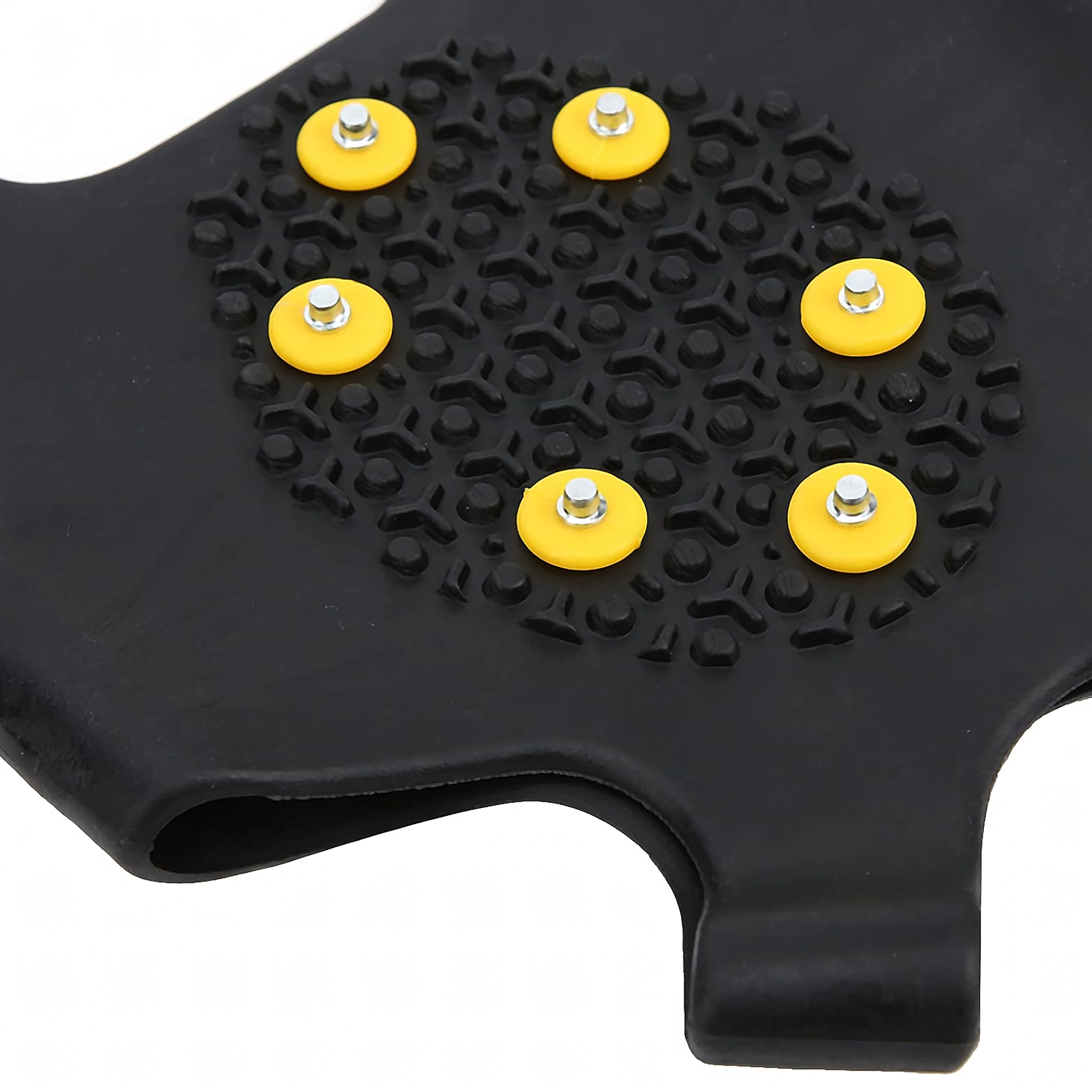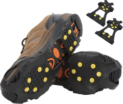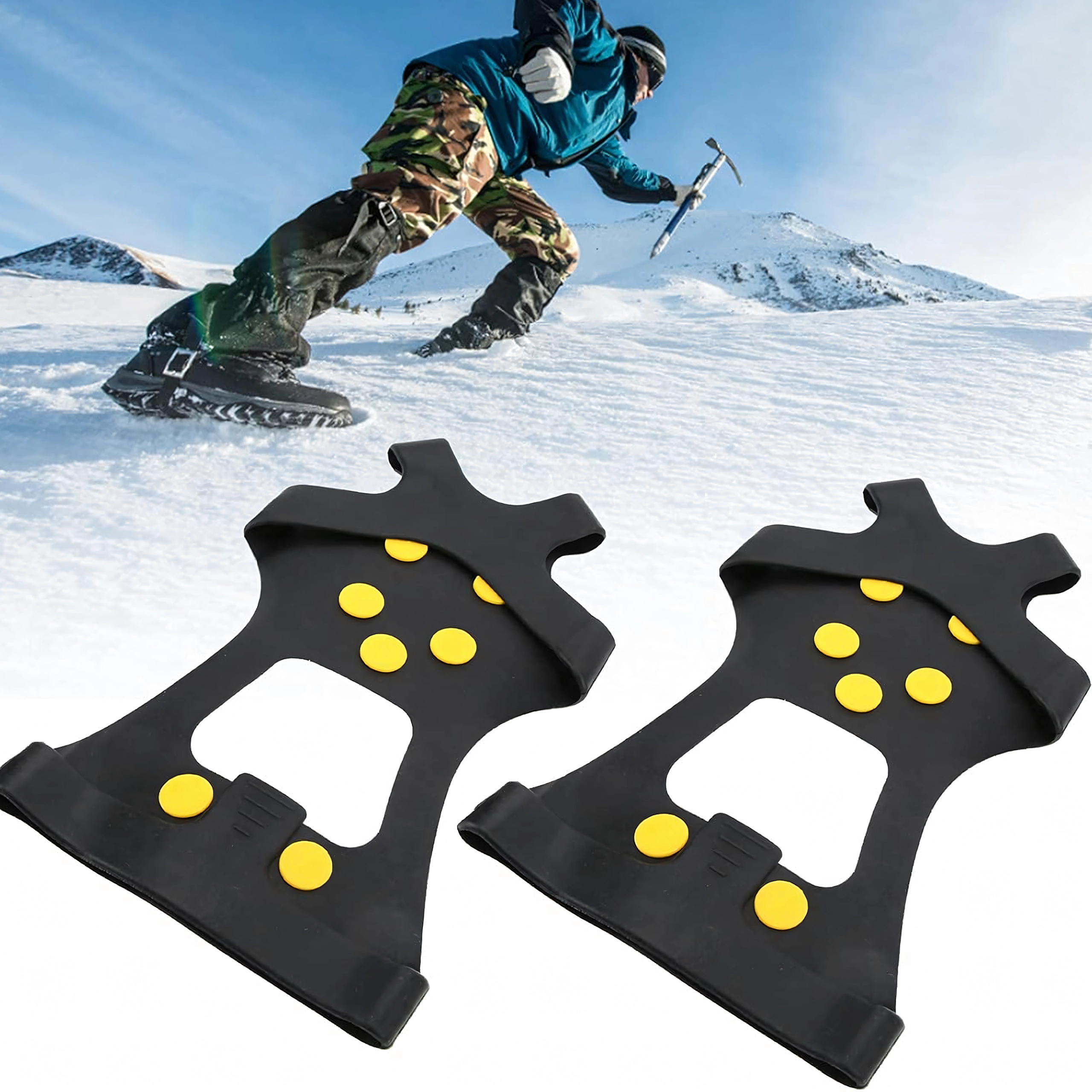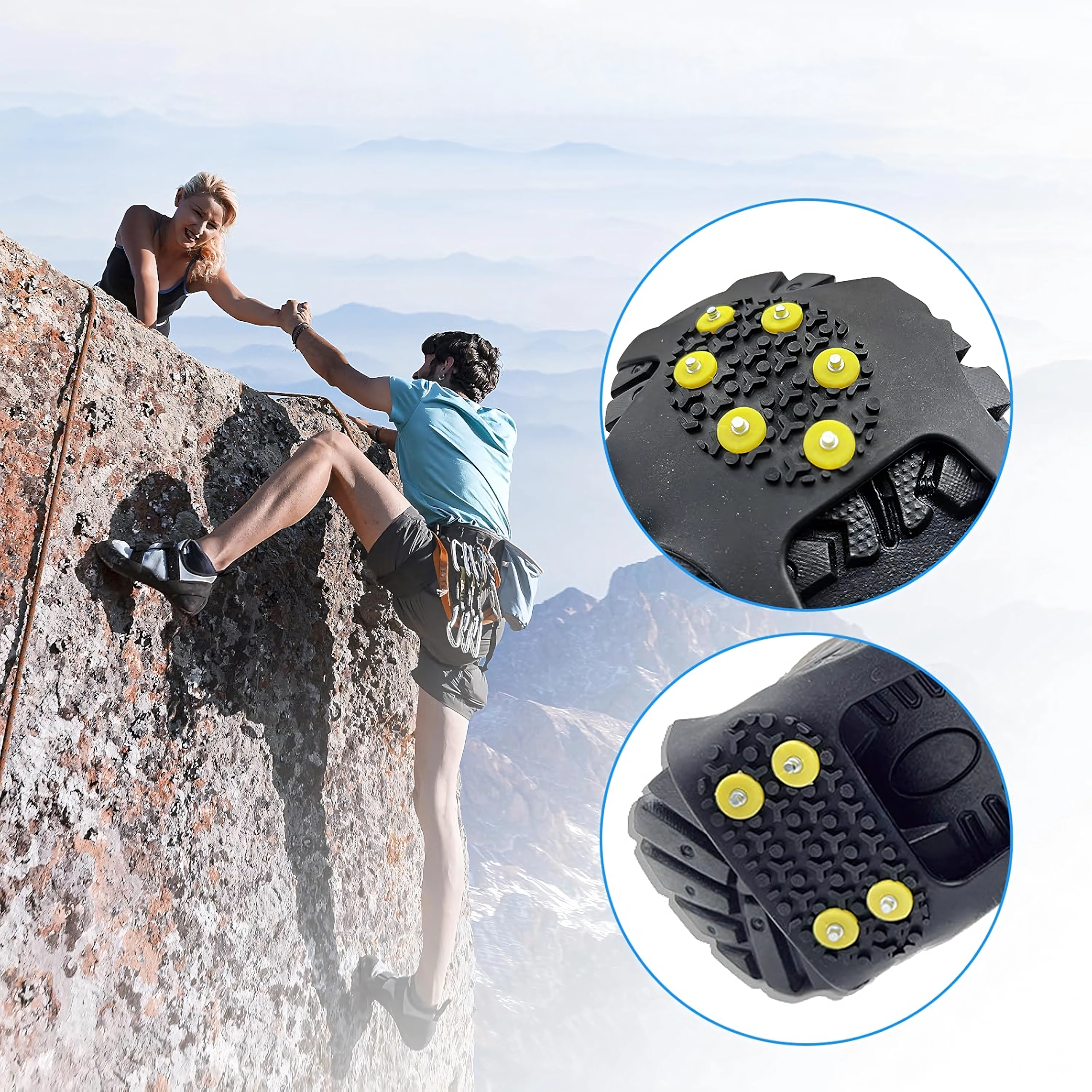 Crampons antidérapants fiables avec pointes métalliques pour une marche sûre sur la neige, la glace et la boue. Fabriqués en caoutchouc TPE résistant et en métal, ils offrent une excellente adhérence, une stabilité et un enfilage facile. 10 pointes métalliques assurent une sécurité à chaque pas ; les crampons sont légers, élastiques et compacts – idéals pour la randonnée, le travail en extérieur et la marche hivernale au quotidien.