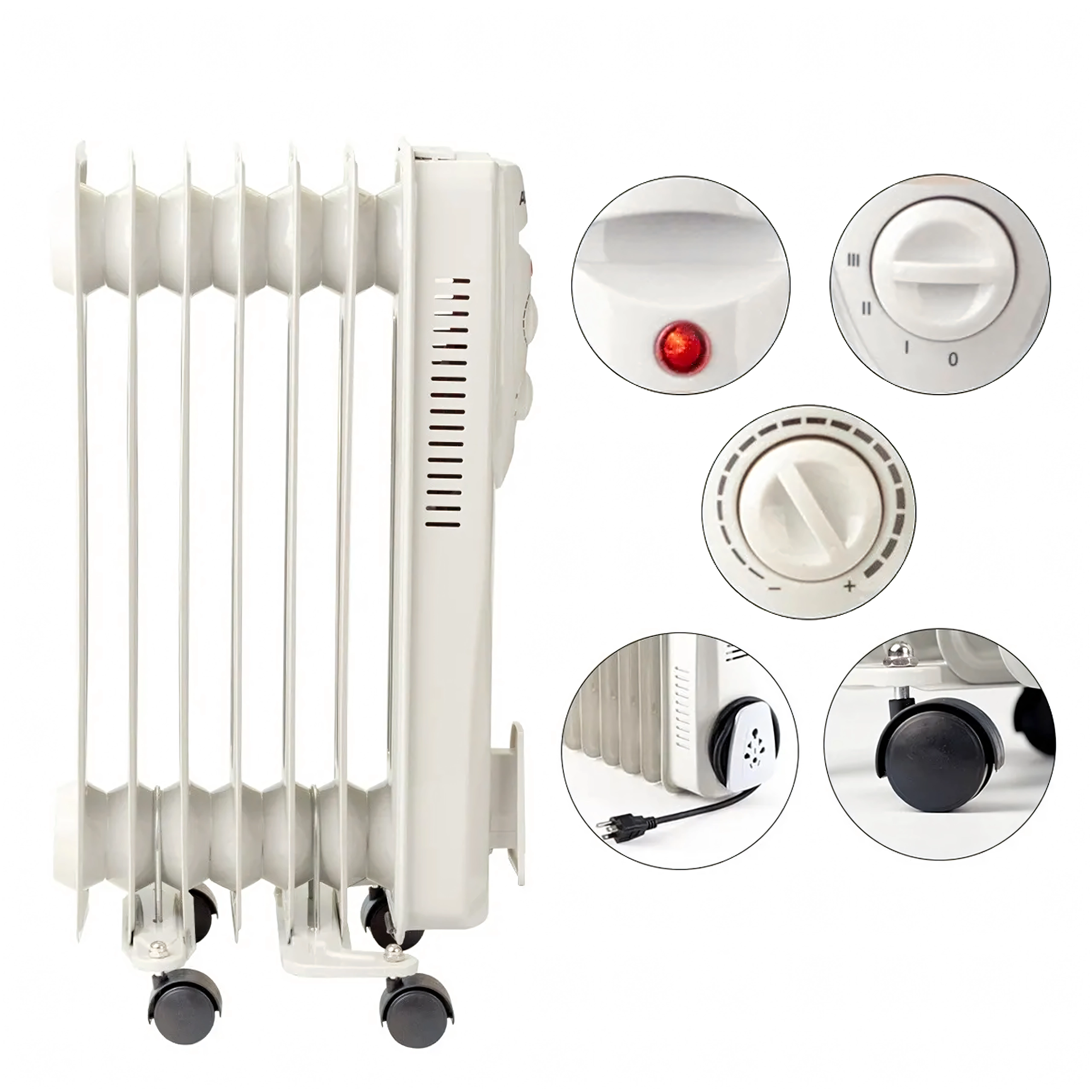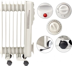 Radiateur électrique à huile 1500 W avec thermostat, 7 ailettes