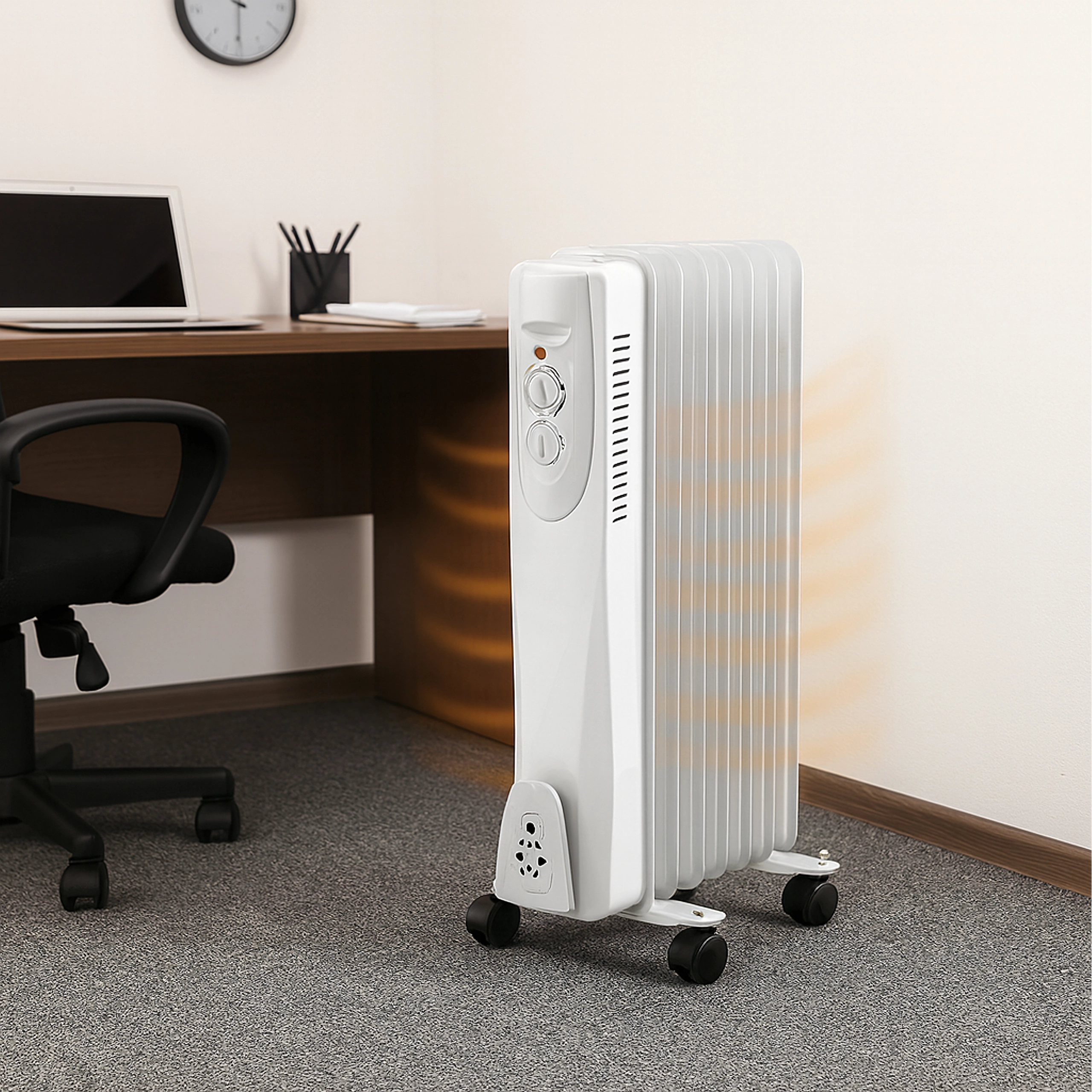 Vous cherchez un chauffage d’appoint silencieux et efficace pour les jours froids ? Le radiateur à huile de 1500 W avec 7 ailettes chauffe votre espace de manière fiable, sans soulever de poussière et avec une chaleur rayonnante agréable. Le thermostat intégré maintient une température stable et aide à économiser l’énergie.