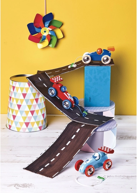 Cette voiture de course à tirer bleu et orange séduit par son design épuré et sa construction robuste. Grâce aux roues métalliques caoutchoutées, la conduite est silencieuse et fluide, permettant aux enfants d’emporter la voiture partout en toute sécurité et confort. Le bois laqué de qualité garantit une longue durée de vie et un entretien facile.