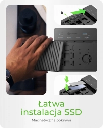 - Installation sans outil – couvercle magnétique pour insérer et retirer facilement les disques.