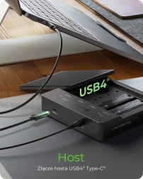 - USB4 jusqu’à 40 Gb/s – haut débit ; chaque baie prend en charge jusqu’à 16 Gb/s pour un accès rapide aux données.
