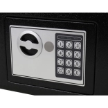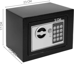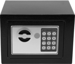 Coffre-fort sûr et facile à utiliser avec serrure électronique, idéal pour ranger espèces, bijoux, documents et autres petits objets. Le code programmable (3–8 chiffres) permet un accès rapide, tandis que la clé mécanique de secours sert pour l’ouverture d’urgence. Après trois tentatives erronées, un verrouillage de 30 secondes s’active avec signalisation lumineuse et sonore.