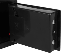 Le corps en acier robuste et la porte solide offrent une protection fiable à la maison, au bureau ou en chambre d’hôtel. Le coffre peut être solidement fixé à l’aide des chevilles et vis fournies. L’espace intérieur convient aux documents jusqu’au format A5 et est doté d’un insert en feutrine pour un rangement délicat des objets de valeur.