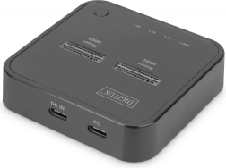 Augmentez la capacité de stockage jusqu’à 8 To avec la station d’accueil double pour SSD M.2 NVMe. Grâce à la fonction intégrée de clonage hors ligne, copiez un disque sans connexion à un PC – en toute sécurité, rapidement et clairement grâce aux voyants LED de progression (25/50/75/100 %). La compatibilité avec les formats 2242, 2260, 2280 et 22110 et les clés M‑Key et B&M‑Key (NVMe) assure un large éventail d’utilisations.
