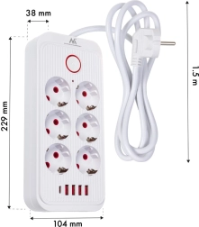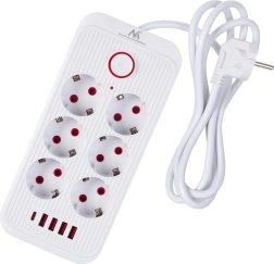 Multiprise universelle avec 6 prises et 5 ports USB (4× USB‑A, 1× USB‑C) pour alimenter et recharger plusieurs appareils simultanément. Offre une puissance de 2500 W, compatible 110–240 V / 50–60 Hz, et sa construction robuste la rend idéale pour le bureau, la maison et l’espace gaming.