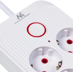 Le bouton intégré avec indicateur permet d’éteindre ou d’allumer tous les appareils connectés d’une simple pression. Des obturateurs de sécurité enfant protègent contre les contacts accidentels.
