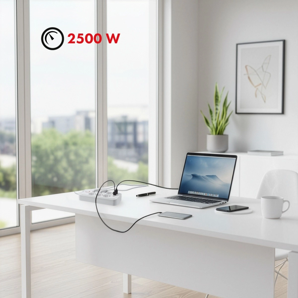 Cette multiprise moderne combine prises classiques et charge USB rapide dans une solution compacte. Vous disposez de suffisamment de ports pour tout, de l’ordinateur portable et l’écran aux smartphones, tablettes et accessoires – sans avoir besoin de chargeurs supplémentaires.