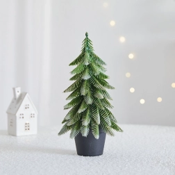 Ce mini sapin élégant en pot est le choix idéal pour compléter rapidement et avec goût votre décoration festive. Ses dimensions compactes de 22 × 10 cm en font un complément parfait pour une commode, un bureau, une étagère ou un rebord de fenêtre. Les pointes argentées des aiguilles apportent un léger scintillement et un look moderne.