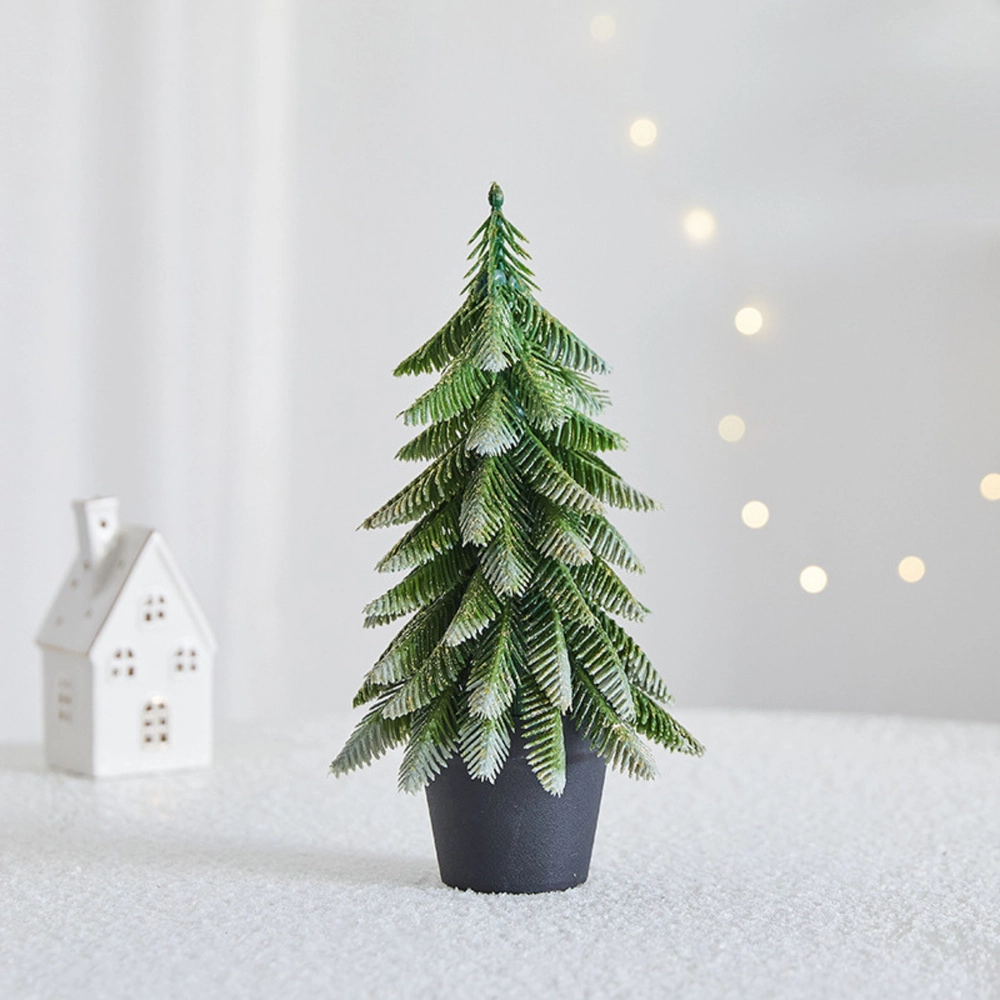 Petit sapin décoratif d’environ 22 cm de hauteur dans un pot élégant, qui apporte à votre intérieur une ambiance hivernale et festive. Ses rameaux denses à effet givre argenté offrent un style raffiné et, grâce au socle stable, se posent facilement sur une commode, une table ou un rebord de fenêtre. Décoration sans entretien adaptée à la maison comme au bureau.