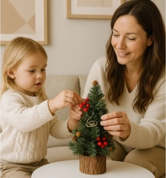 Le petit sapin de table est idéal pour les étagères, tables ou comptoirs d’accueil et crée instantanément une atmosphère festive.
