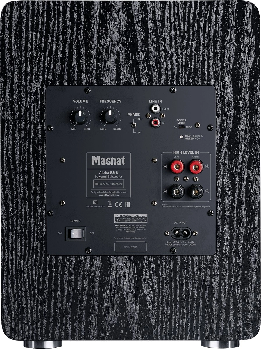 Le Magnat Alpha RS 8 est un caisson de basses performant et peu encombrant pour home cinéma et hi‑fi. Grâce à son amplificateur intégré en classe D, il délivre 80 W RMS et jusqu’à 160 W en crête. Le haut-parleur grave de 200 mm (8") avec membrane en papier traitée et système magnétique optimisé Klippel garantit une réponse rapide et des graves profonds et maîtrisés.