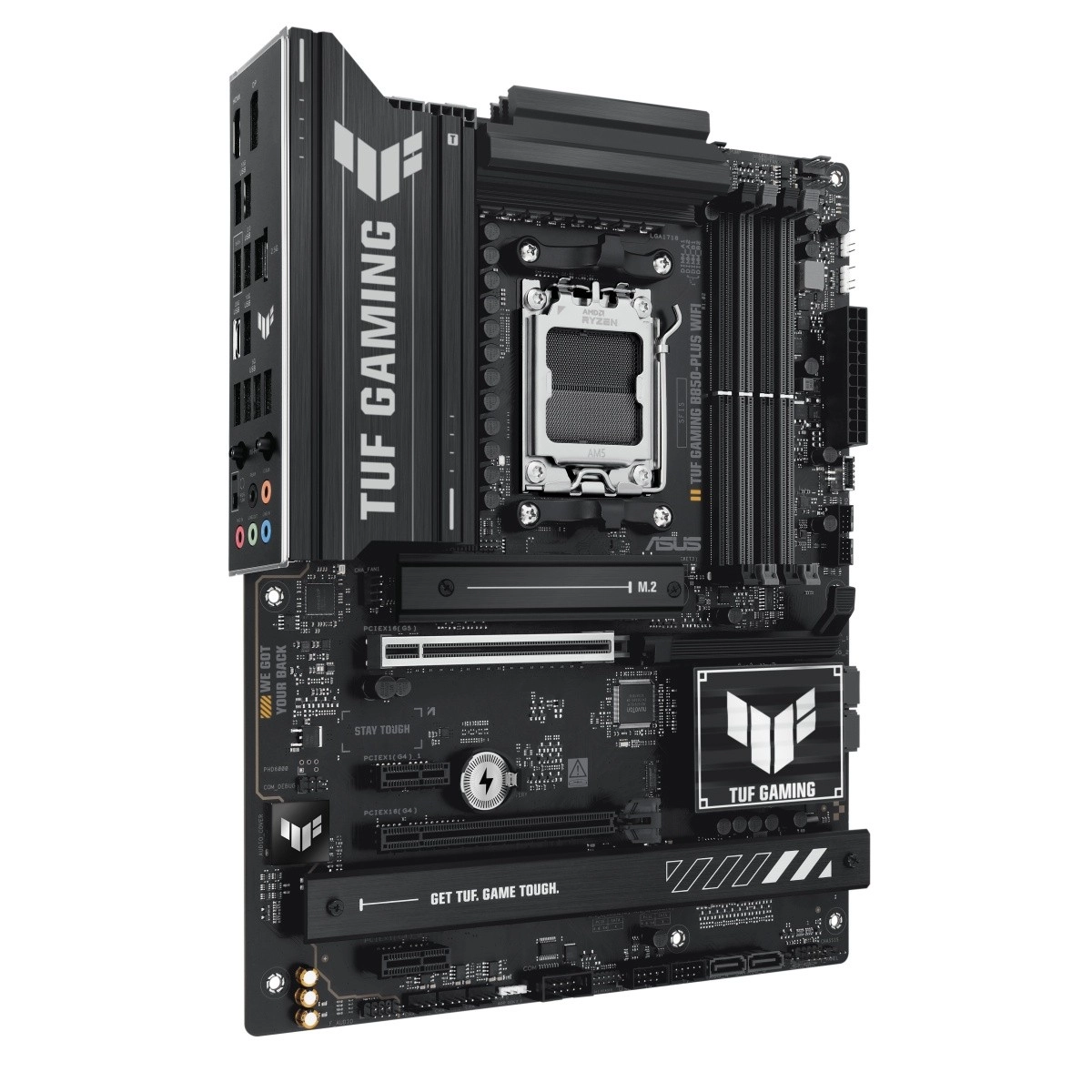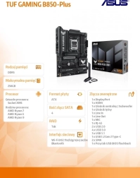 La carte mère ASUS TUF GAMING B850‑Plus WiFi s’appuie sur les tout nouveaux processeurs AMD Ryzen pour socket AM5 et les associe à une durabilité à long terme, une alimentation stable et un refroidissement efficace. Grâce au Wi‑Fi intégré, à la prise en charge de la DDR5 et aux sorties vidéo HDMI/DisplayPort, elle offre une base fiable pour les configurations de jeu et les applications exigeantes, y compris l’IA.