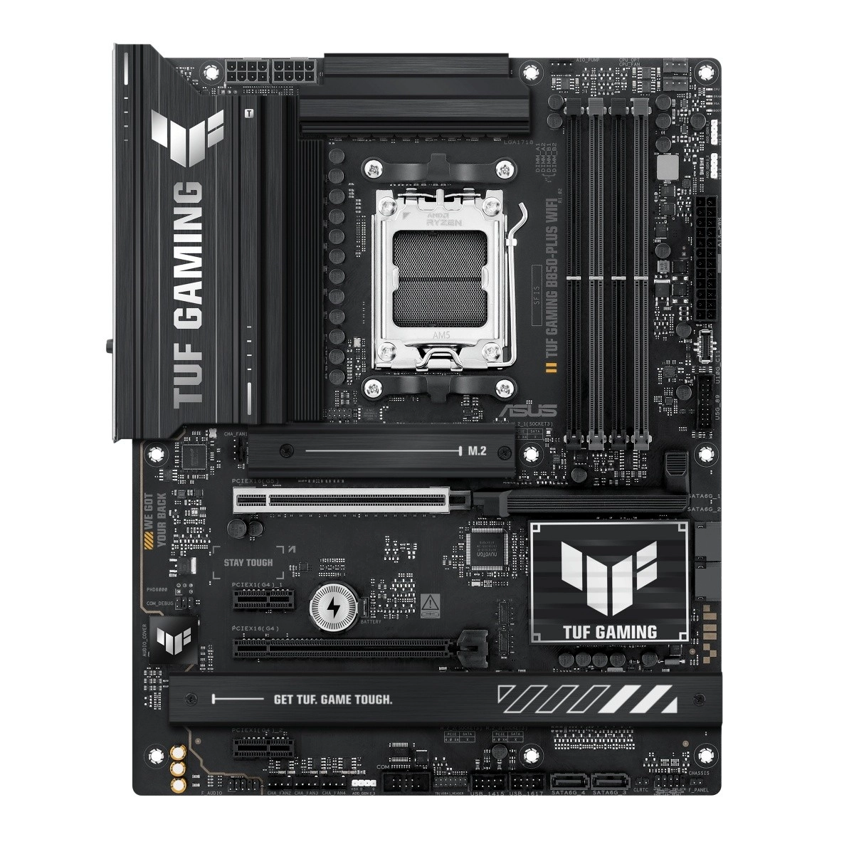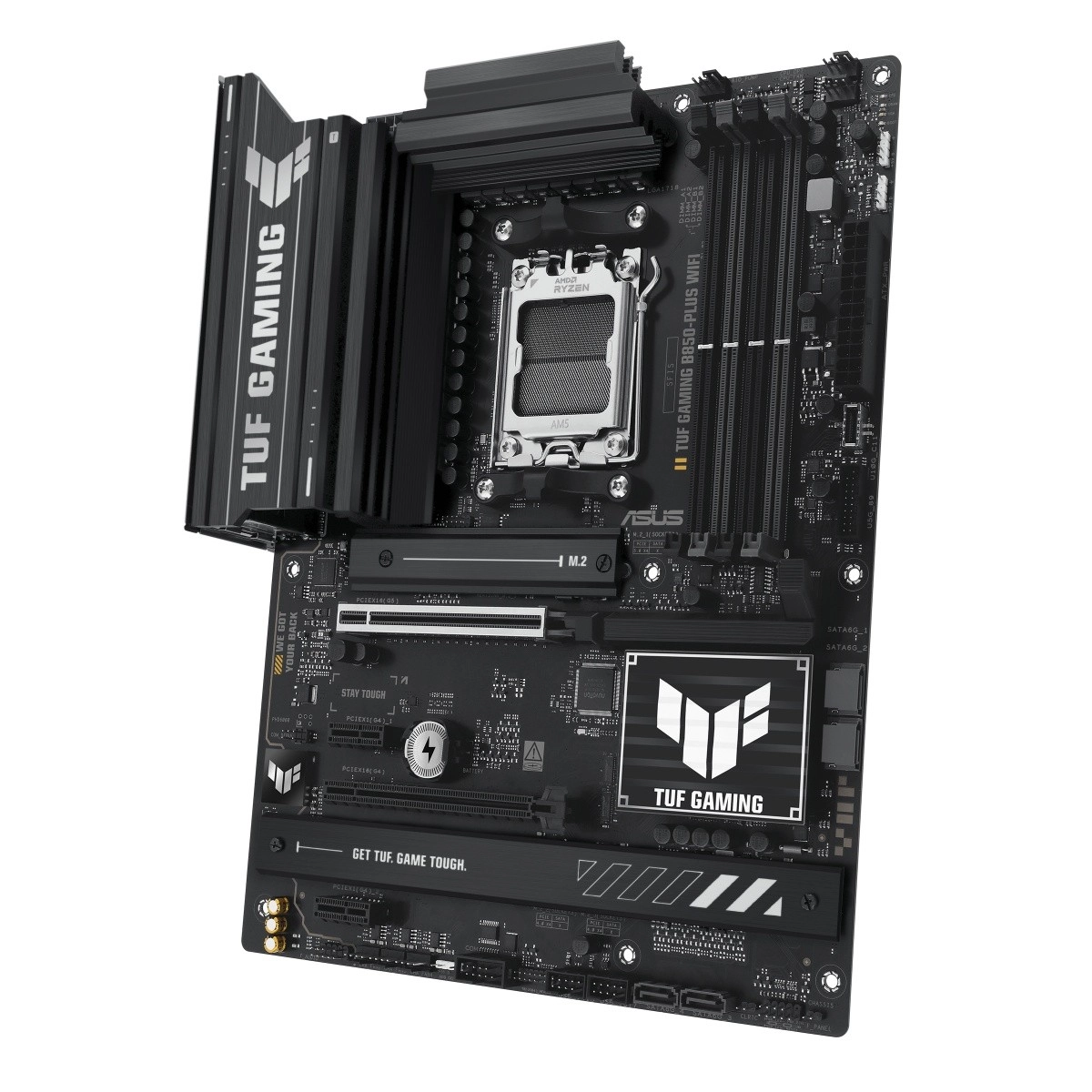 L’ASUS TUF GAMING B850‑Plus WiFi est conçue avec des composants de qualité militaire et subit des tests de fiabilité rigoureux. Des étages d’alimentation améliorés et un refroidissement bien pensé garantissent un fonctionnement stable lors de longues sessions de jeu comme sous la charge d’applications modernes.