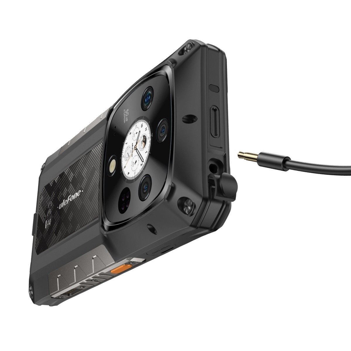 Construction robuste avec coins renforcés, ports étanches et matériaux durables protégeant le téléphone contre l’eau, la poussière, les chocs et les conditions météo extrêmes – idéal pour le travail sur le terrain et l’outdoor.