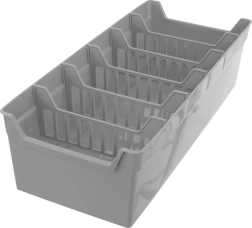 Le plastique gris de qualité est solide mais léger. La structure ouverte des cloisons assure une bonne visibilité et une circulation d’air optimale.