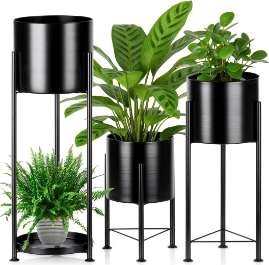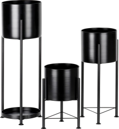 Grâce aux hauteurs différenciées, vous créez des compositions harmonieuses qui améliorent l’accès à la lumière et favorisent une croissance saine des plantes. La structure métallique résistante et la base bien pensée garantissent une excellente stabilité. Le noir intemporel convient aussi bien aux intérieurs classiques qu’au style loft industriel.