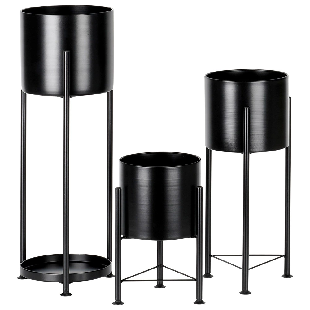 Ce lot de trois cache-pots métalliques noirs sur piètements fins met en valeur vos plantes préférées et apporte une touche moderne à votre espace. Les cache-pots se retirent aisément des supports pour faciliter l’arrosage et l’entretien. Le grand cache-pot inclut en outre un plateau pratique pour la petite verdure ou les accessoires.