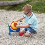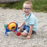 Cette bétonnière colorée pour enfants imite fidèlement une véritable machine de chantier. Grâce à la manivelle latérale, il est facile de faire tourner le tambour et de mélanger du sable ou de petits cailloux. Son cadre stable et ses bords lisses rendent le jeu sûr et amusant.