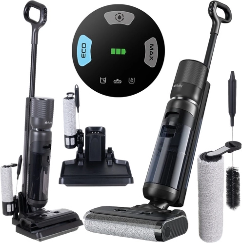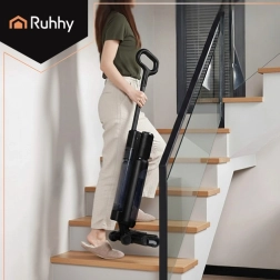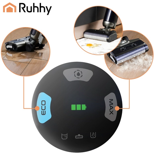 L’aspirateur laveur sans fil RUHHY Lixo combine aspiration et lavage humide des sols en une seule étape. Il dispose de réservoirs séparés pour l’eau propre (750 ml) et l’eau sale (720 ml) pour un nettoyage hygiénique sans étaler les saletés. Son moteur BLDC 200 W puissant offrant jusqu’à 16 kPa d’aspiration, deux modes ECO/MAX, la fonction d’auto-nettoyage et un écran LED clair garantissent un nettoyage rapide et efficace, jusqu’à 40 minutes par charge.