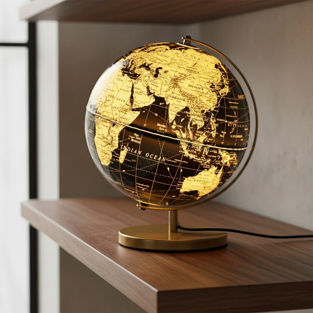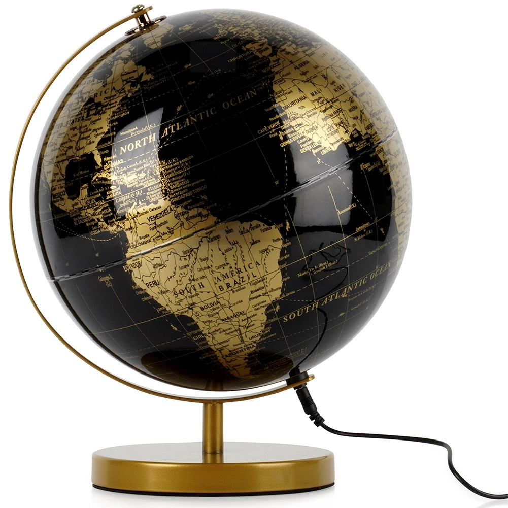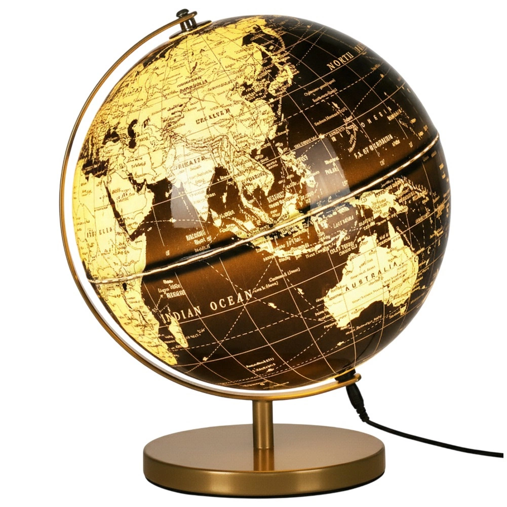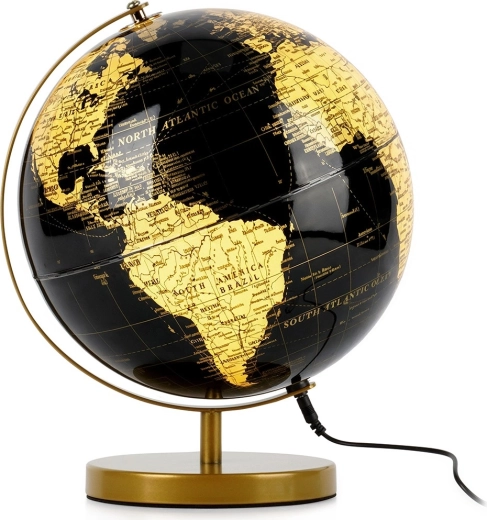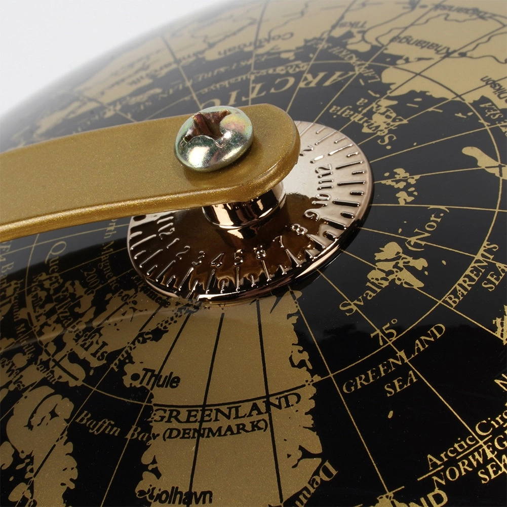 Le globe détaillé en noir et or, associé à une base métallique stable, apporte une touche moderne et luxueuse à votre intérieur.