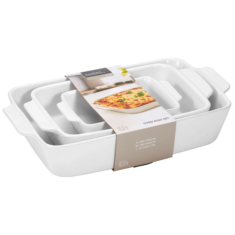 Ensemble de plats à gratin en céramique blancs 3 L / 1,5 L / 0,5 L, 3 pcs