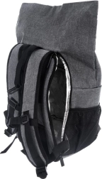 Une organisation astucieuse assure un accès rapide à vos affaires : compartiment principal isolé spacieux, poche frontale zippée, poche latérale en mesh pour bouteille et autres poches latérales et arrière zippées pour les petits objets. La fermeture roll‑top avec boucle permet d’ajuster le volume et de sécuriser le contenu, tandis que la poignée supérieure facilite le transport.