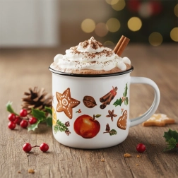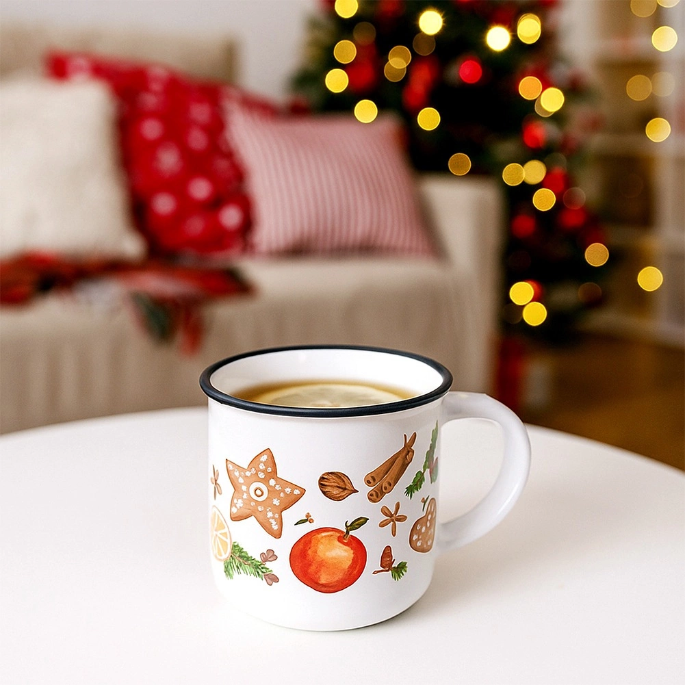 Élégant mug en céramique de 330 ml au motif hivernal, idéal pour boire quotidiennement du thé, du café ou du chocolat chaud. Grâce à son anse confortable, son liseré noir et sa fabrication résistante, il offre une utilisation agréable, un design de saison et un entretien facile au lave-vaisselle et au micro-ondes.