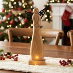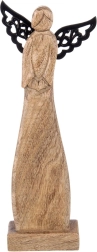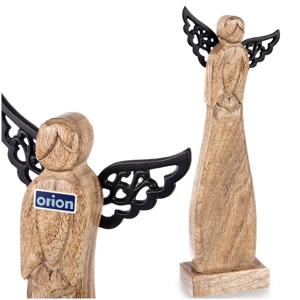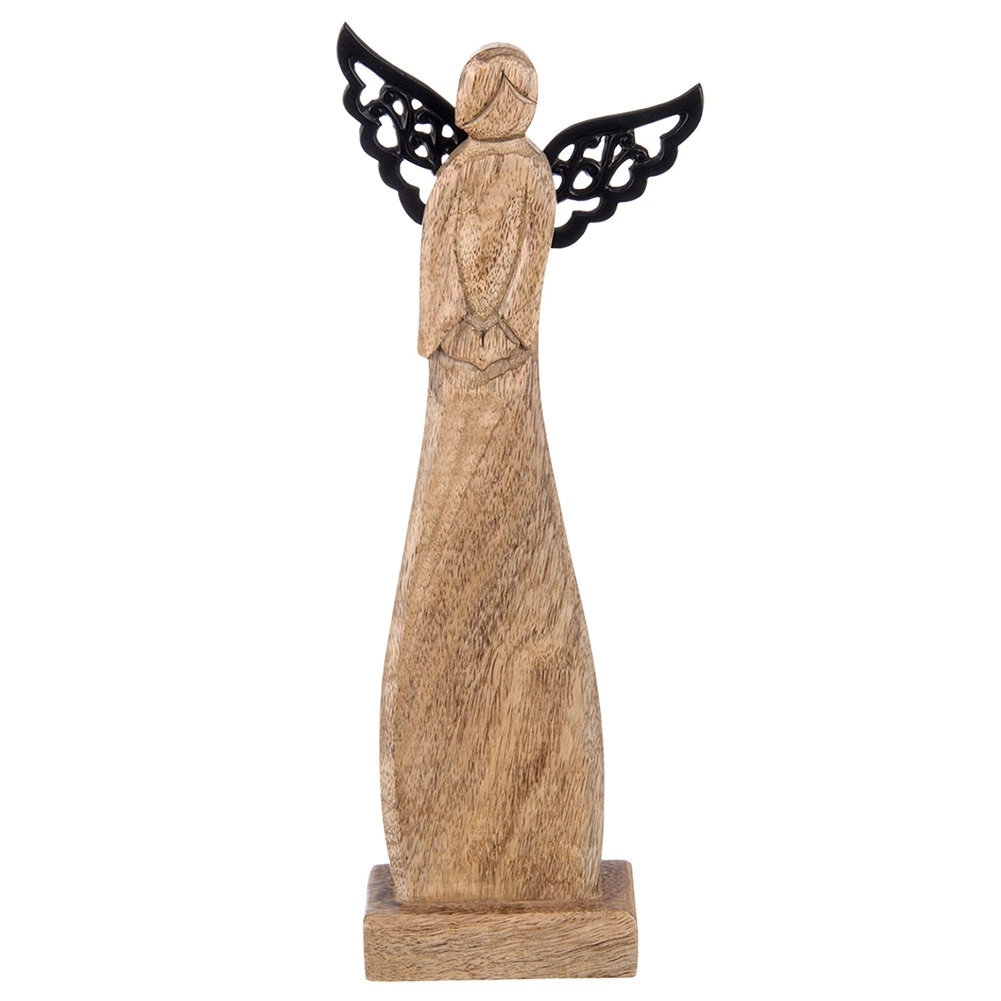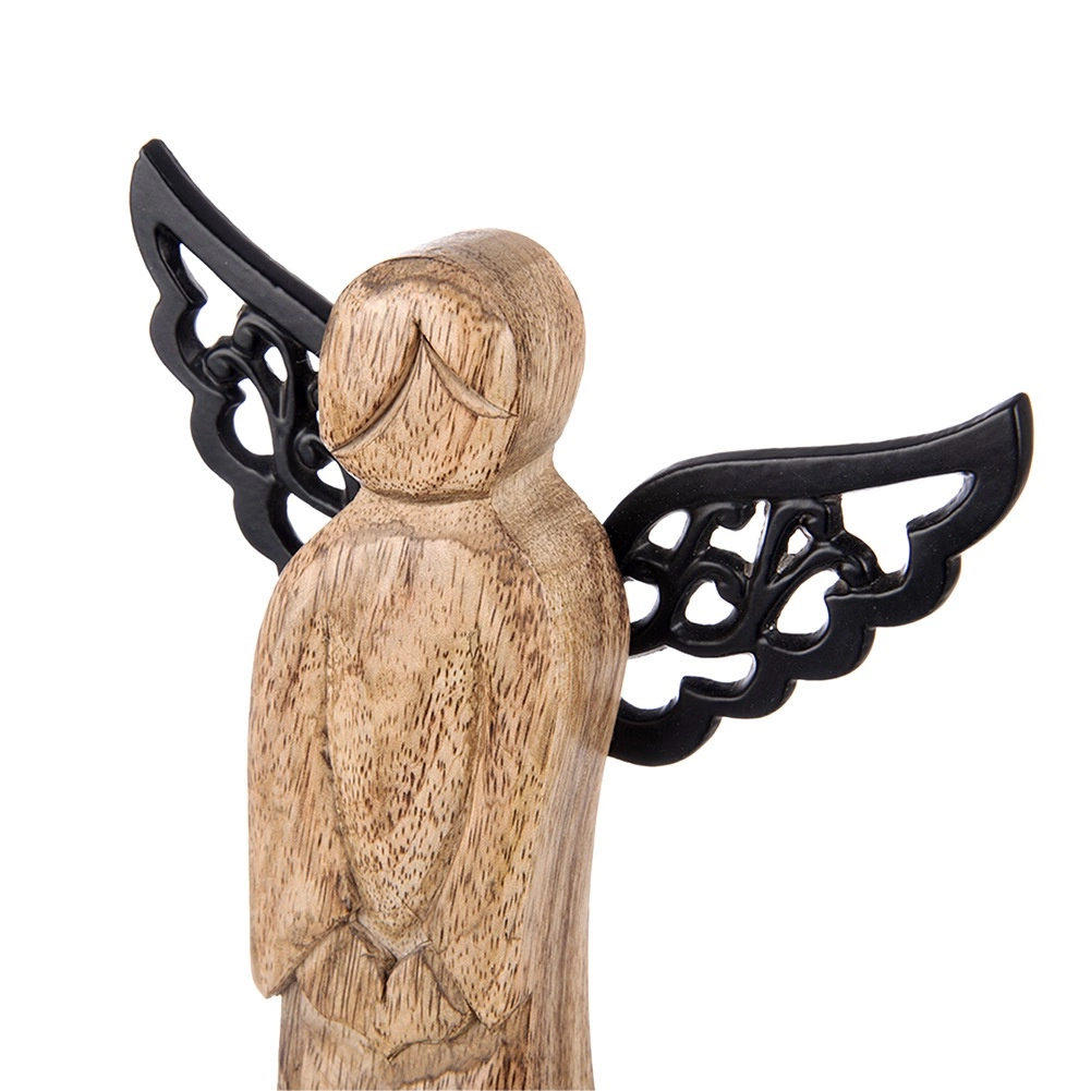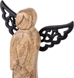 Les ailes décoratives de couleur noire créent un contraste élégant avec le bois naturel et soulignent la silhouette de l’ange.