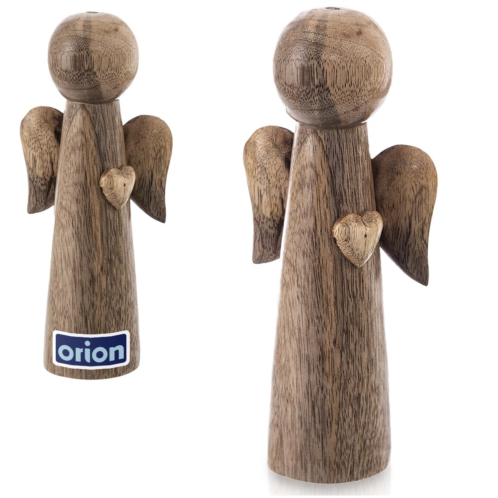 Élégant ange en bois de manguier naturel, une décoration stylée pour la maison toute l’année. Grâce à son design minimaliste, à la veine naturelle du bois et au travail artisanal, il se distingue superbement sur une étagère, une commode ou une table de fête. Hauteur 21 cm, réalisation stable autoportante et produit original de la marque ORION garantissent qualité et élégance intemporelle.