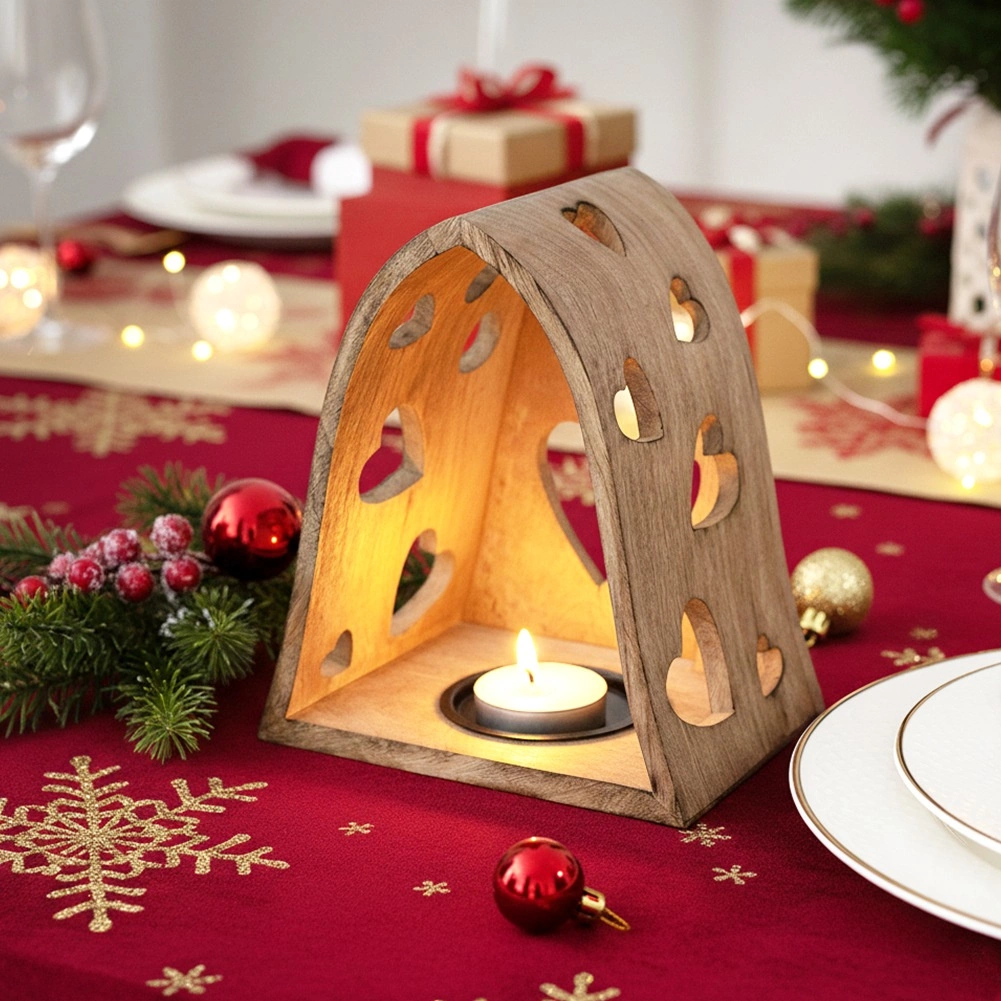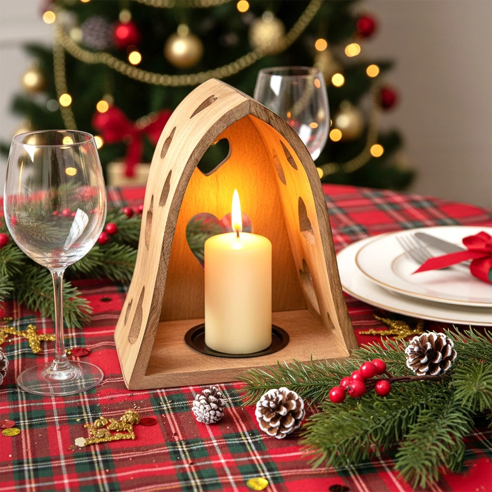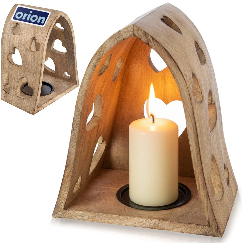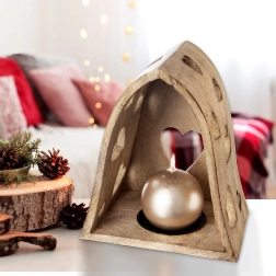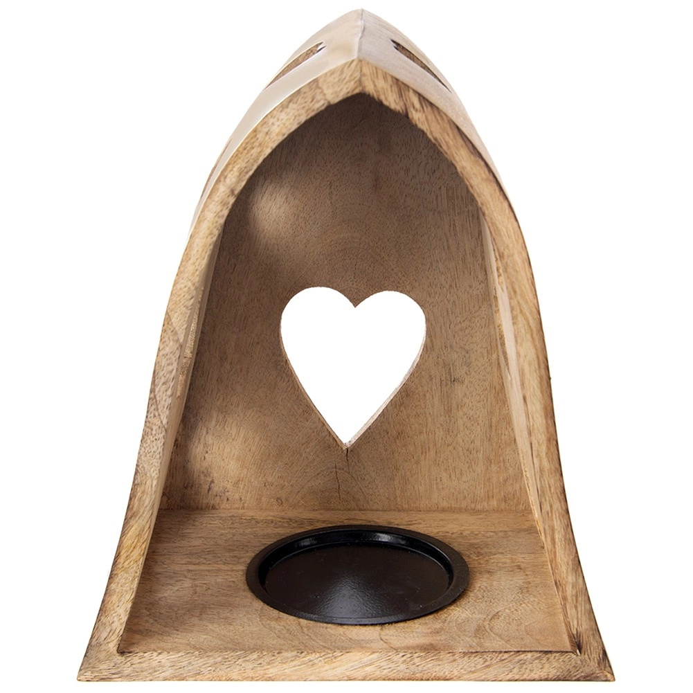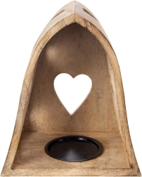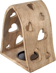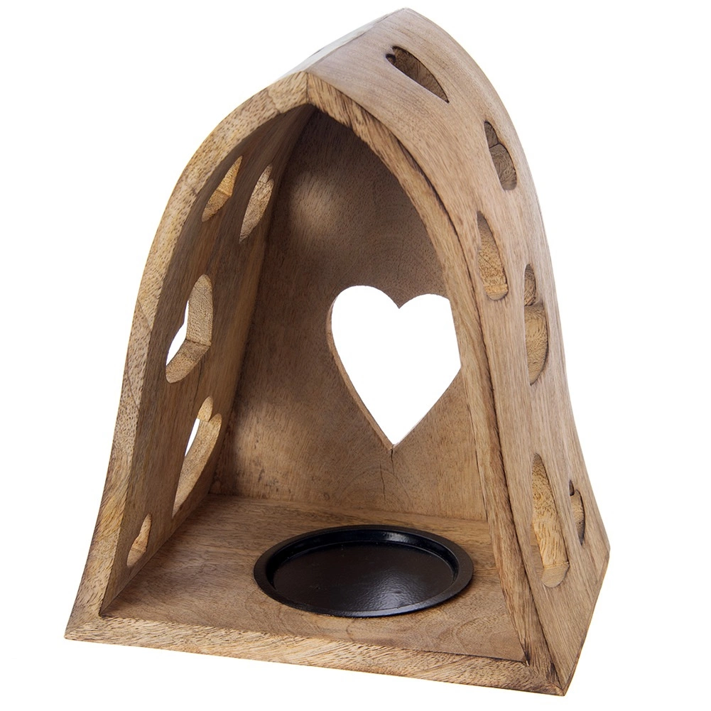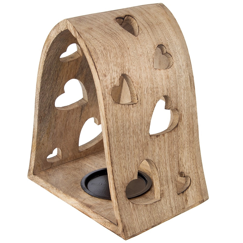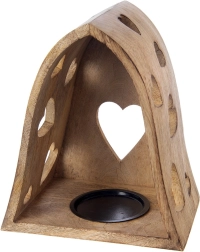 Ce bougeoir décoratif en forme d’arche combine l’aspect naturel du bois de manguier avec de délicates découpes en forme de cœur qui projettent, une fois éclairées, de chaleureux motifs lumineux aux alentours. Idéal pour le salon, la chambre, la salle de bain ou une terrasse couverte.