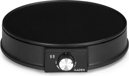 La crêpière électrique KADEN est idéale pour la préparation quotidienne de crêpes, pancakes et galettes au bon goût maison. Grâce à une plaque chauffée uniformément avec revêtement antiadhésif en téflon, réalisez de fines crêpes à la française comme des pancakes moelleux avec peu d’huile et un minimum de salissures.