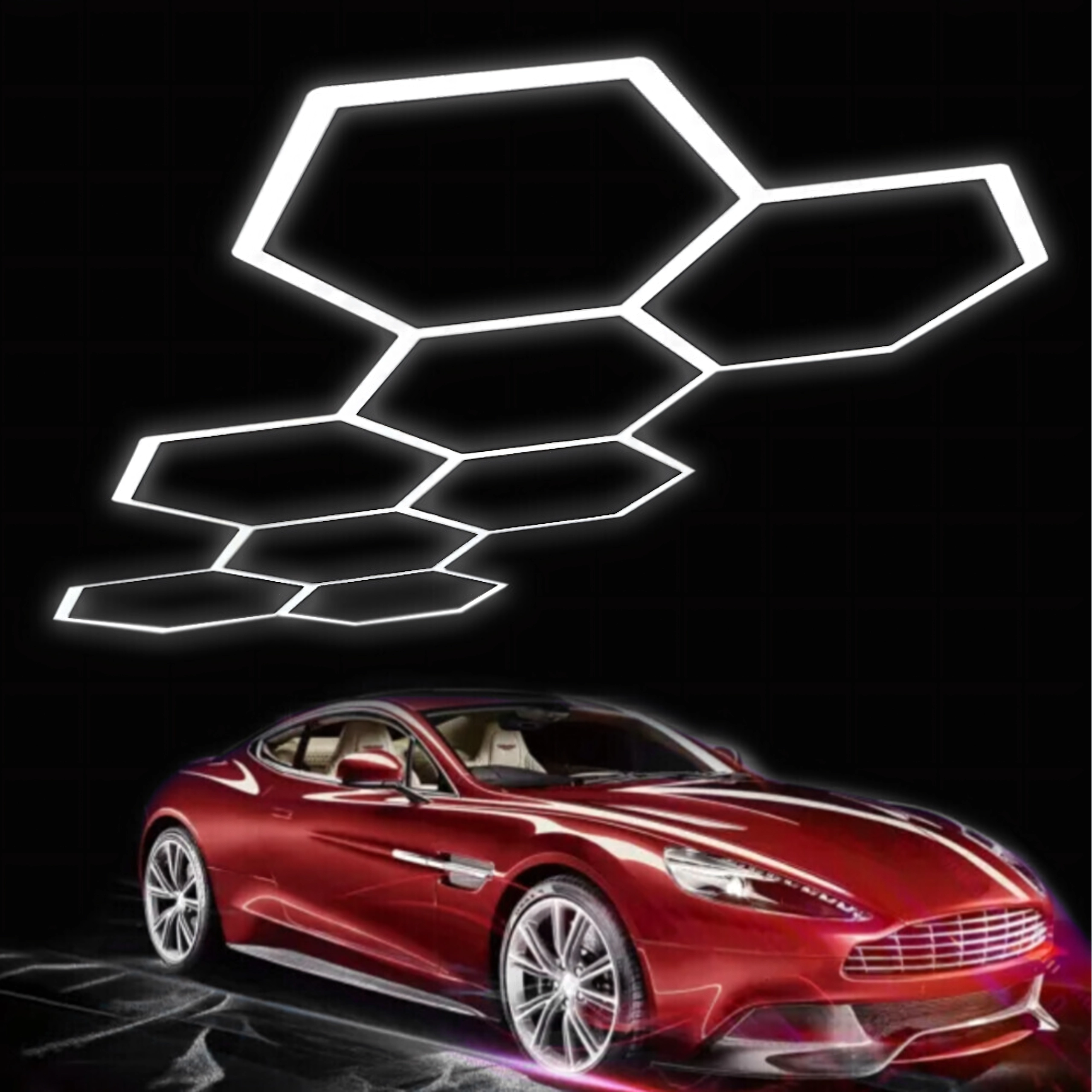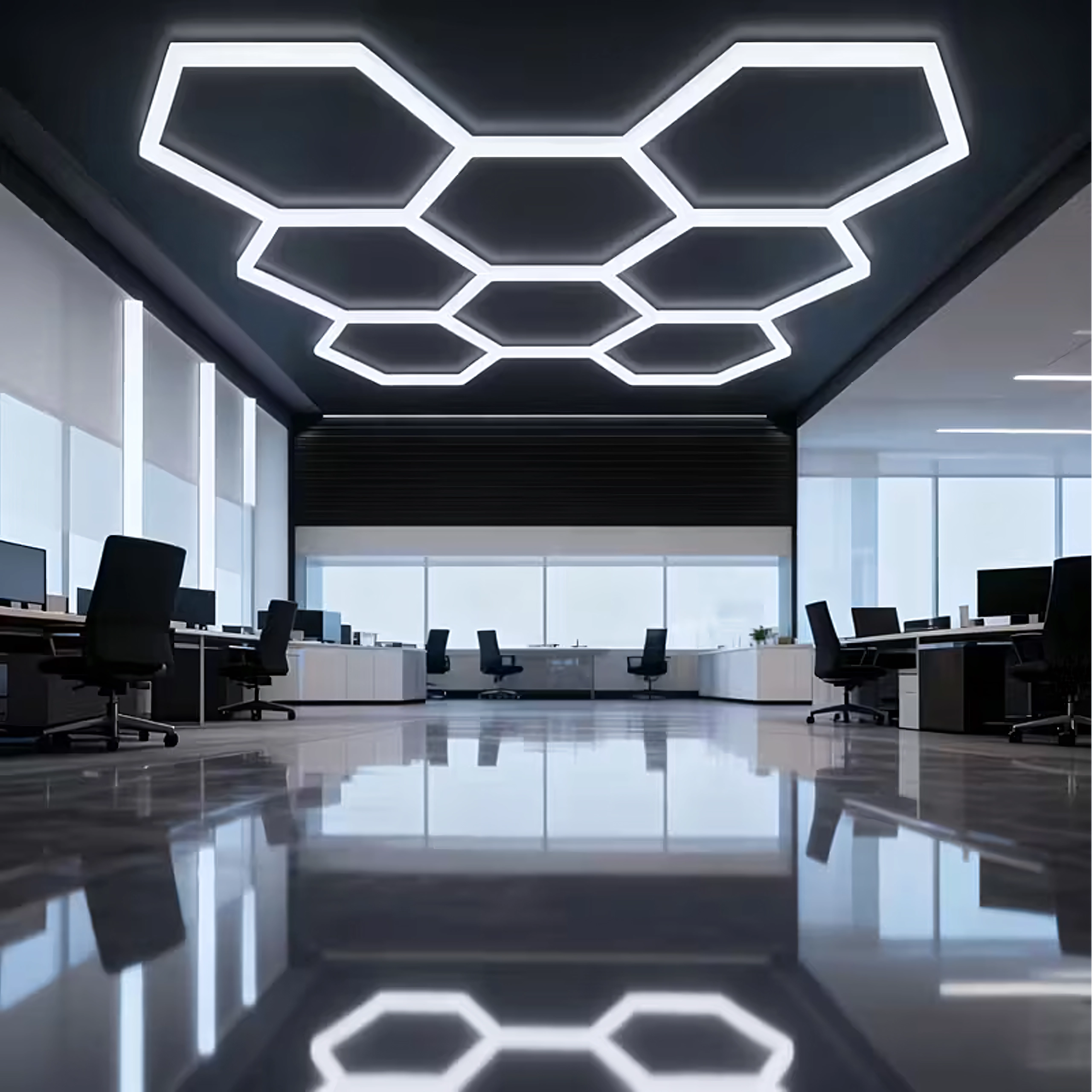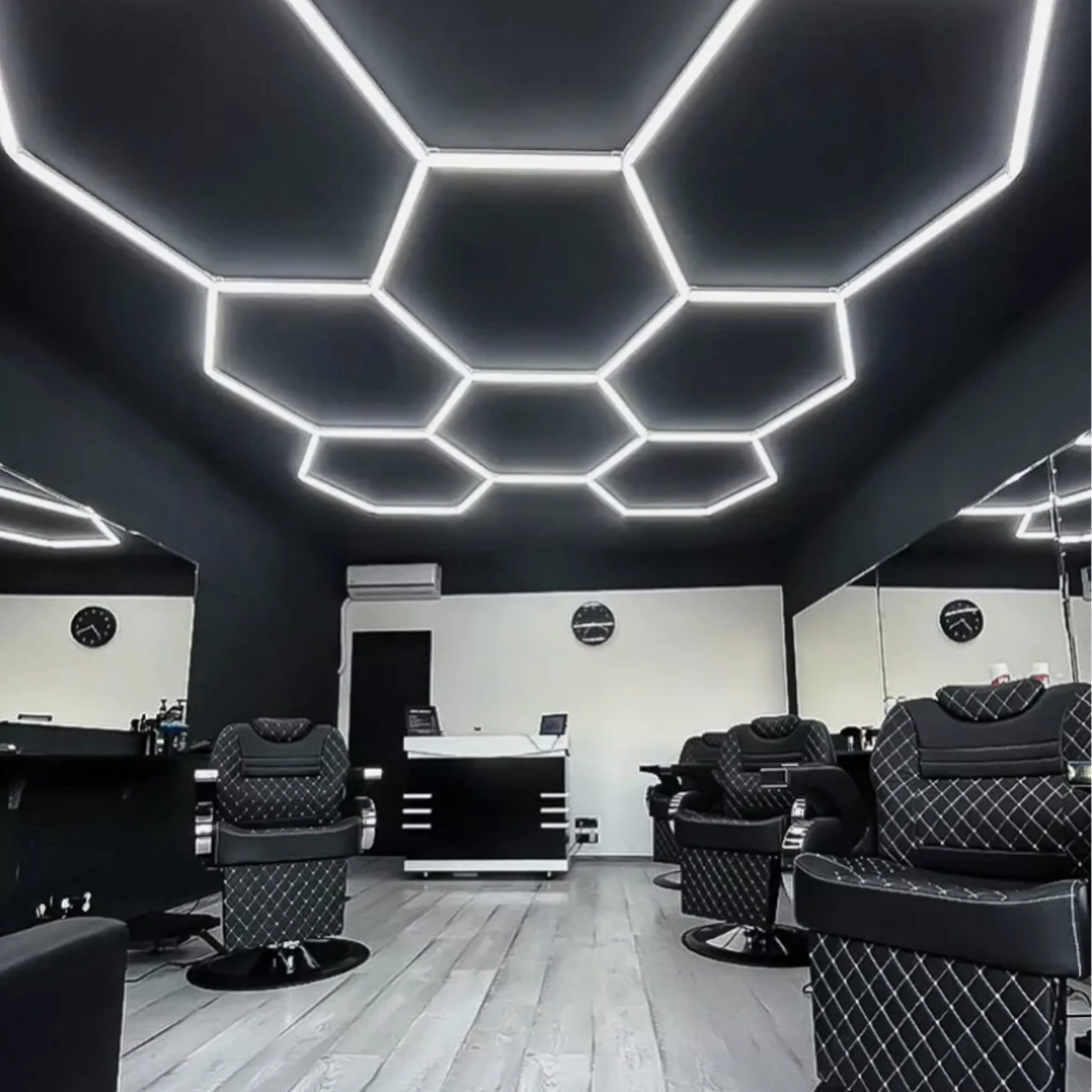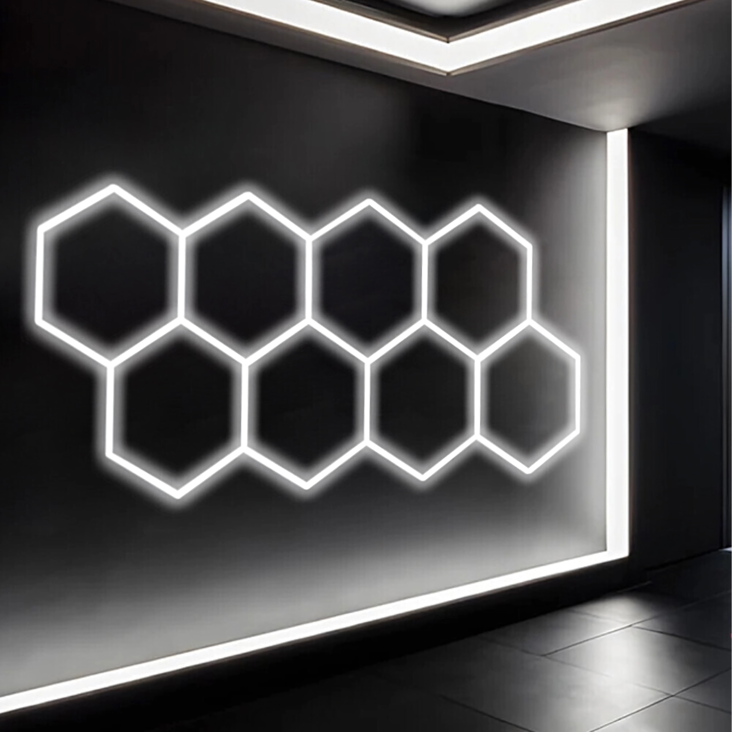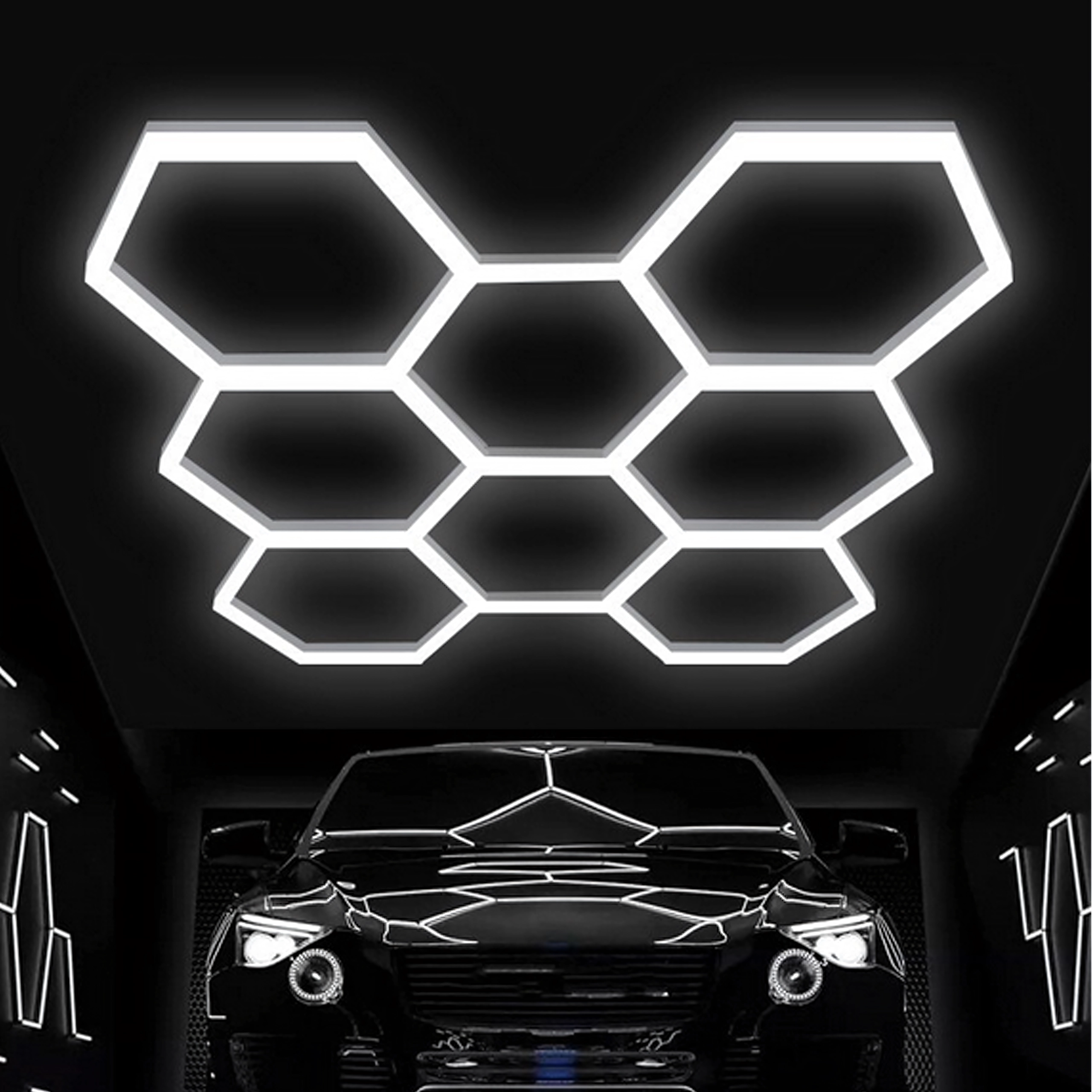 Apportez à votre espace un design moderne et un éclairage parfait. Le système LED hexagonal modulaire de dimensions 257 × 244 cm et d’une puissance de 280 W fournit une lumière blanche froide 6500K, idéale pour le garage, l’atelier, le studio de detailing, le bureau et la maison. Le motif en « alvéoles » assure un éclairage uniforme et un aspect attrayant.