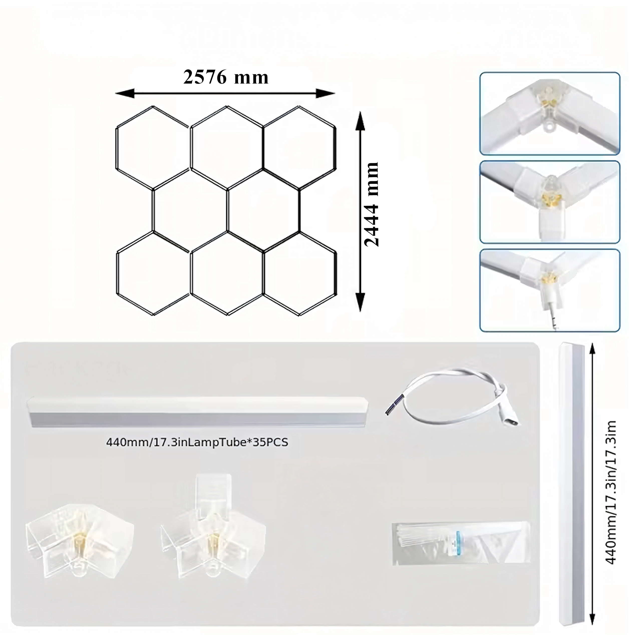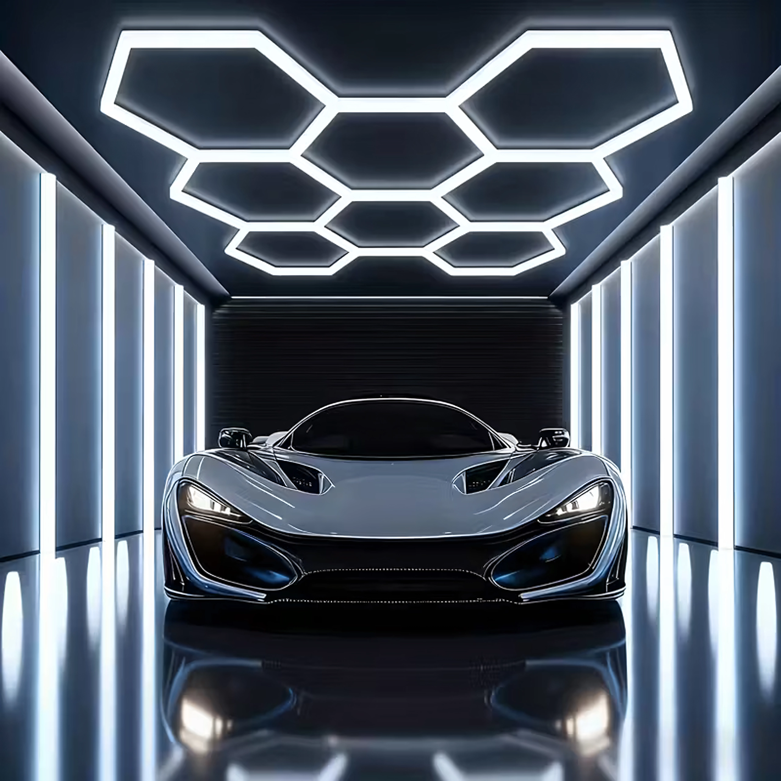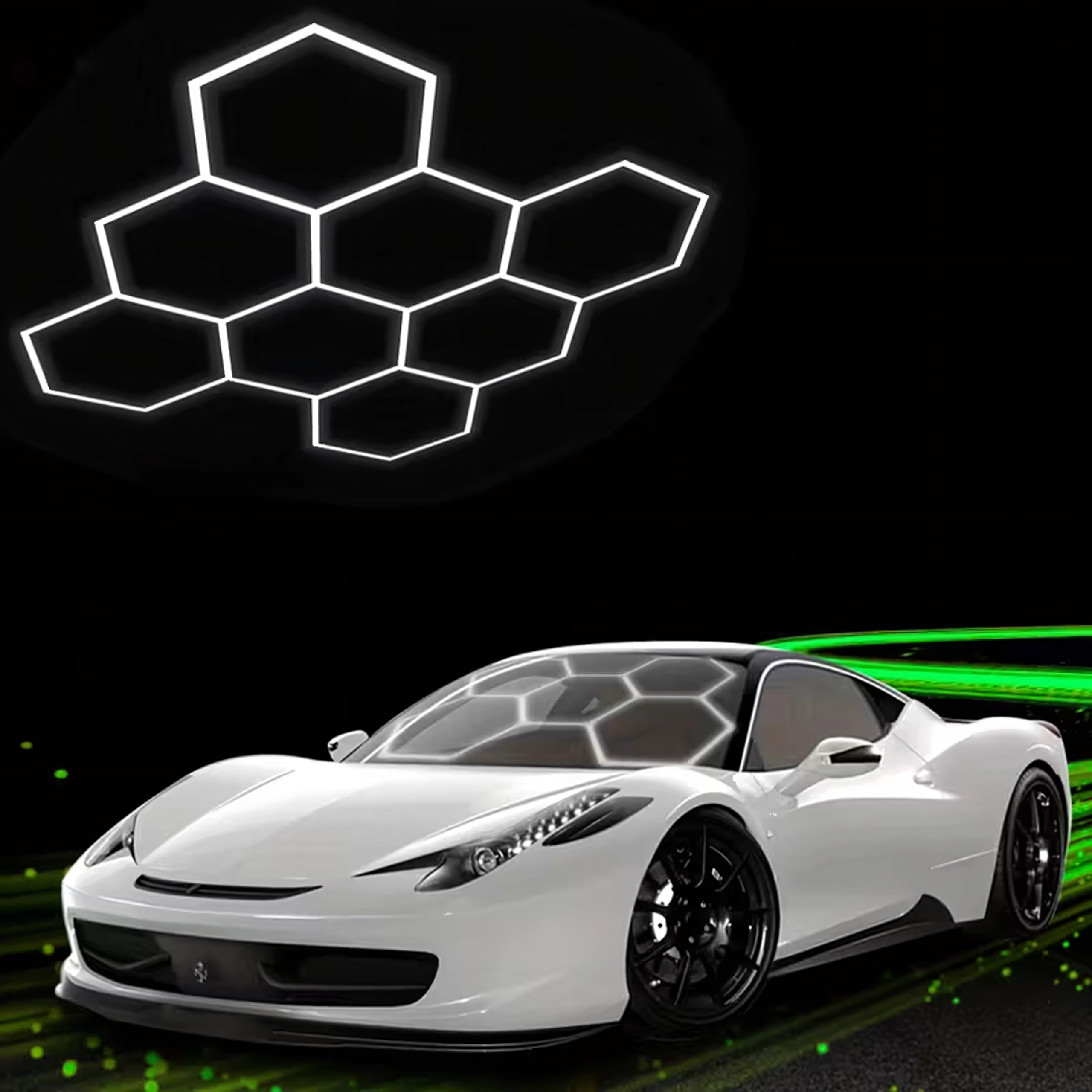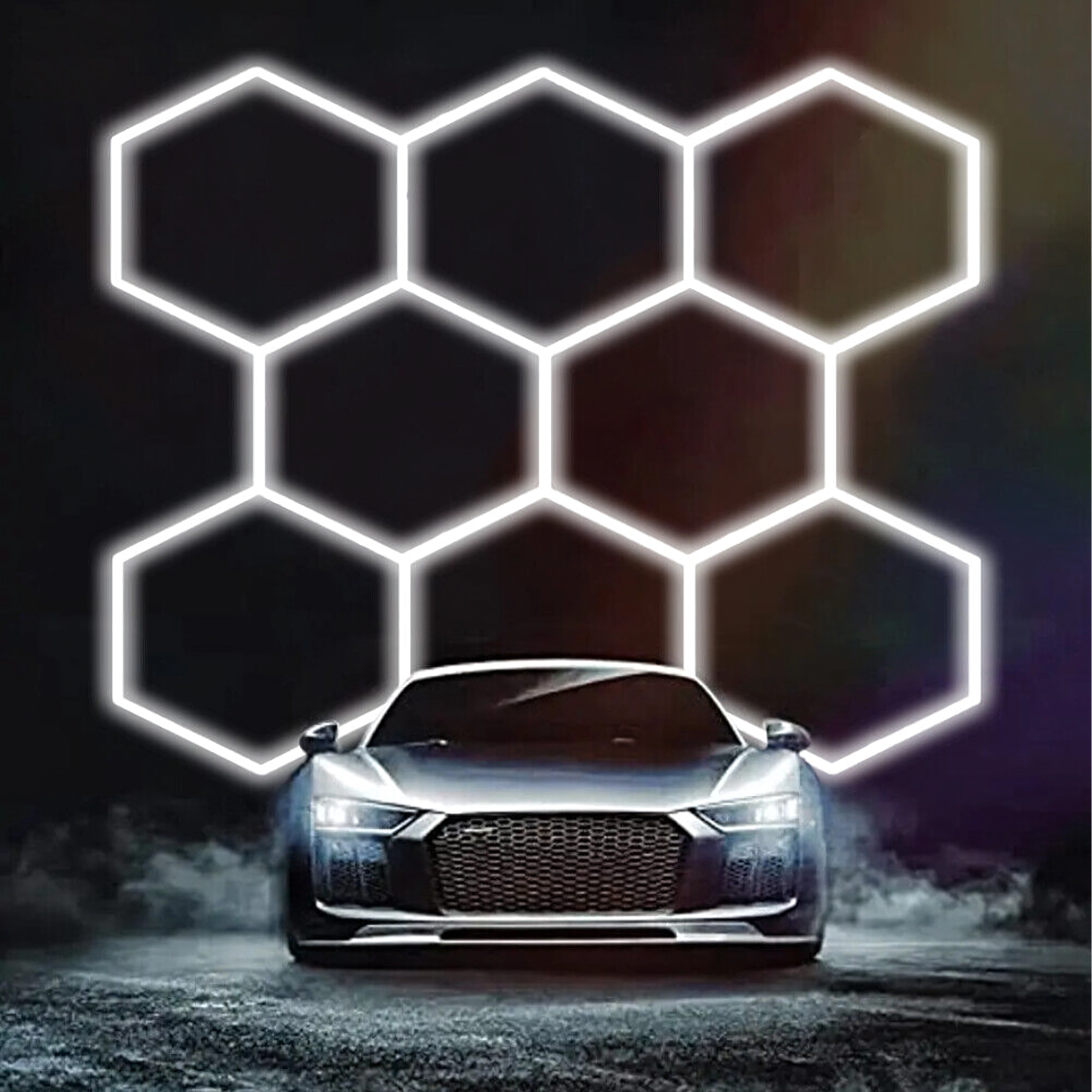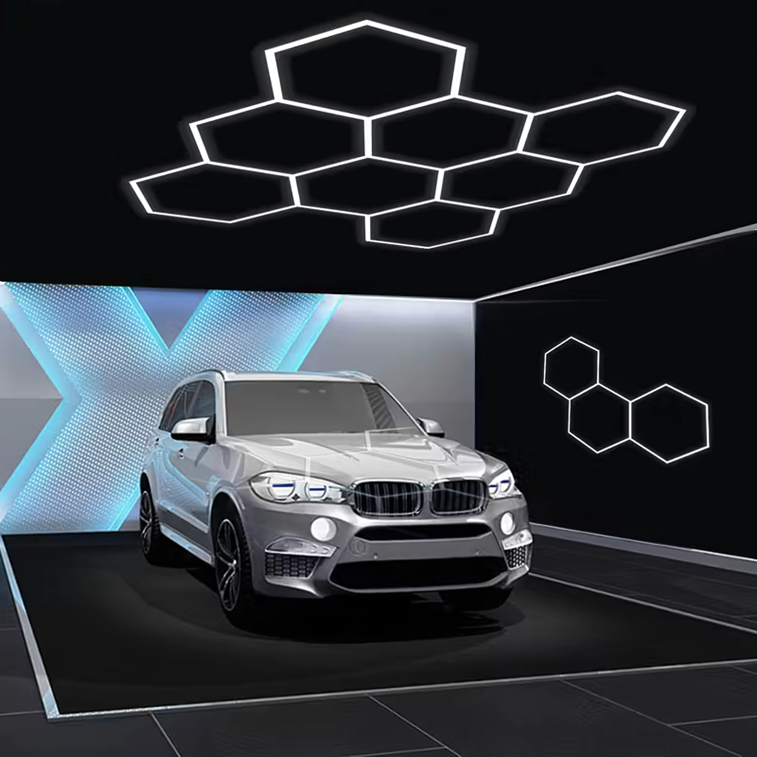 Apportez à votre espace un design moderne et un éclairage parfait. Le système LED hexagonal modulaire de dimensions 257 × 244 cm et d’une puissance de 280 W fournit une lumière blanche froide 6500K, idéale pour le garage, l’atelier, le studio de detailing, le bureau et la maison. Le motif en « alvéoles » assure un éclairage uniforme et un aspect attrayant.