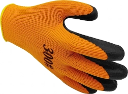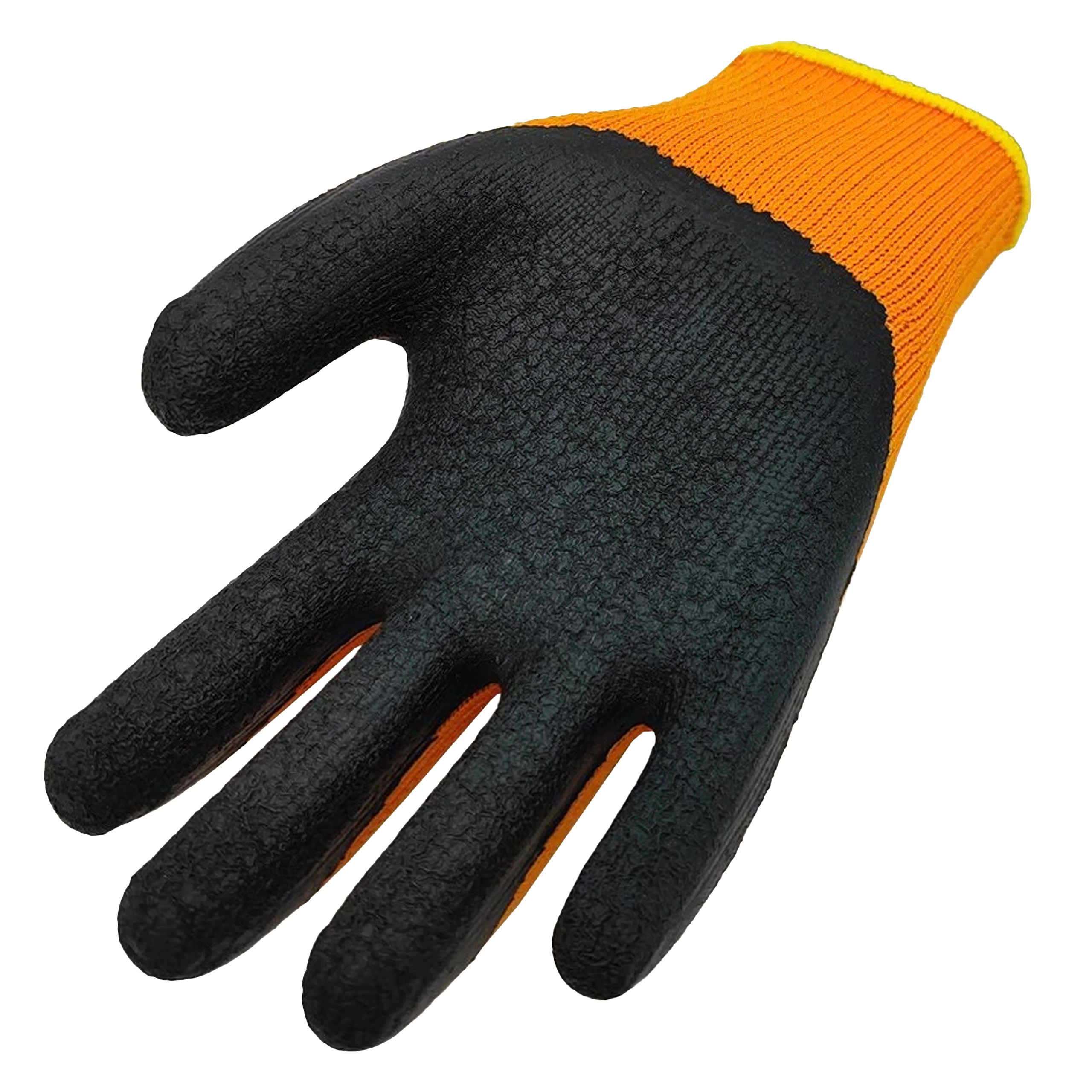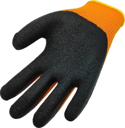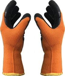 Ces gants pratiques pour la saison hivernale offrent une maîtrise sûre lors de la manipulation d’outils et de matériaux. Le tricot acrylique plus épais apporte de la chaleur, tandis que le latex texturé sur la paume et les doigts assure une excellente adhérence même sur surface humide. La couleur orange haute visibilité et les poignets élastiques contribuent à un ajustement sûr et stable.