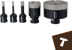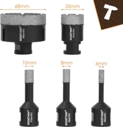 Cinq diamètres les plus utilisés (6/8/10/35/68 mm) couvrent les travaux d’installation et de pose. L’adaptateur fourni permet l’utilisation avec une perceuse.