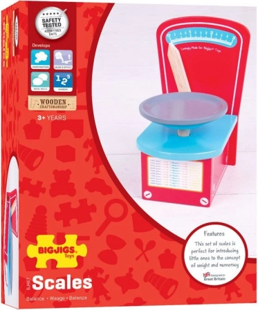 Cette balance fonctionnelle entièrement en bois de Bigjigs Toys est un accessoire idéal pour la cuisine des enfants. En jouant à cuisiner, les enfants entraînent le calcul, l’estimation des poids ainsi que les compétences sociales lors du jeu en groupe.