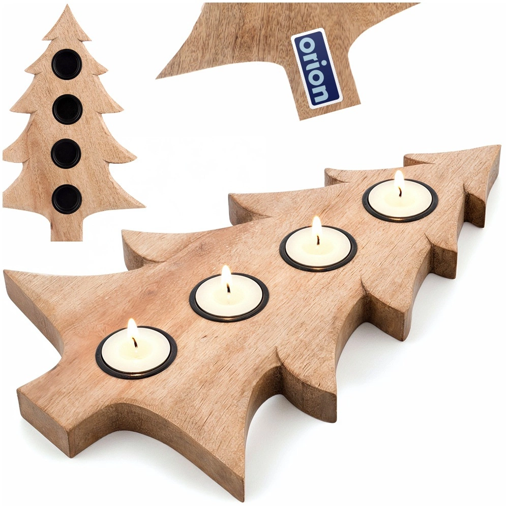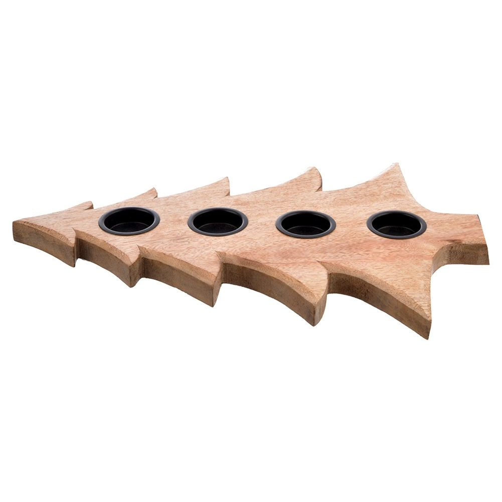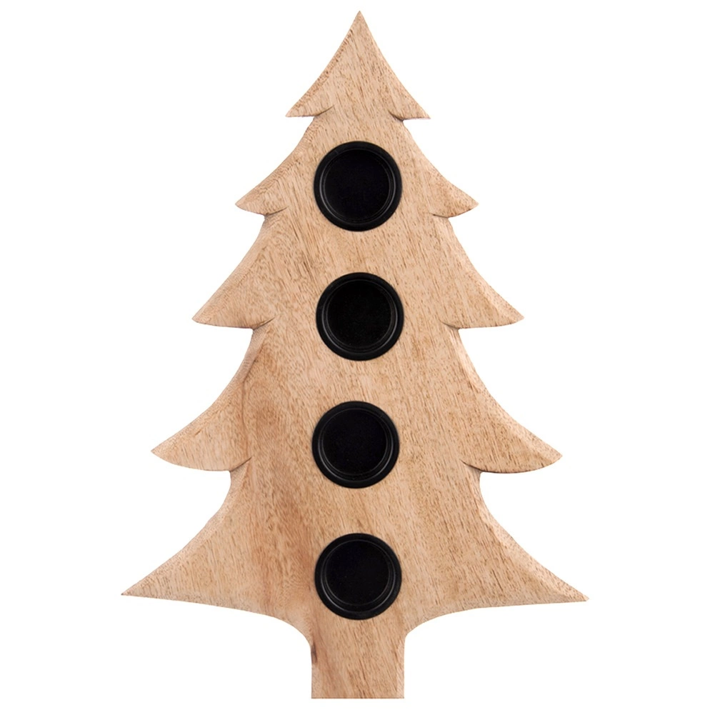 Créez une atmosphère chaleureuse chez vous avec ce bougeoir en bois en forme de sapin de Noël. L’association du bois de manguier et des coupelles métalliques noires pour bougies chauffe-plat confère à la décoration une allure élégante tout en garantissant une utilisation sûre. Ses dimensions de 40 × 27,5 × 2,5 cm permettent de le placer sur une table, une commode ou un rebord de fenêtre.