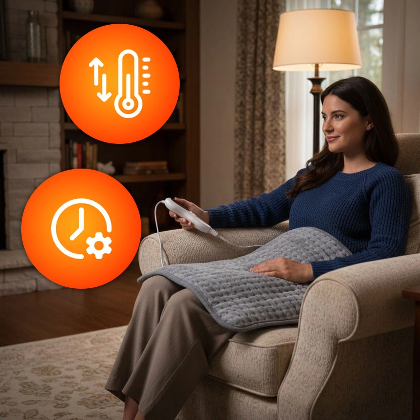Grâce à 10 niveaux de température réglables (30–48 °C), choisissez facilement une chaleur douce ou un chauffage plus intense. La minuterie à 3 options (45/90/120 min) assure un arrêt automatique pour une utilisation en toute sécurité, même en somnolant.