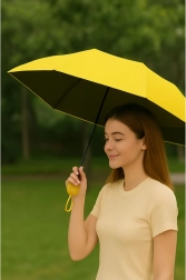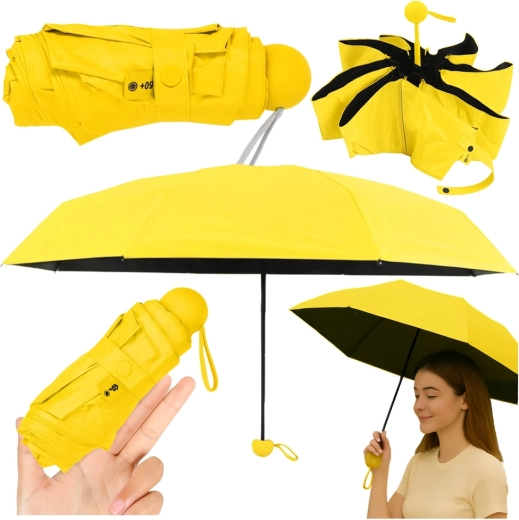 Parapluie jaune élégant de 90 cm de diamètre alliant design pliable compact, légèreté et haute protection UV UPF 50+. Grâce à son polyester résistant, sa poignée sphérique confortable et son étui de protection inclus, il est idéal pour le sac à main comme pour le sac à dos – pour la pluie comme pour le soleil.