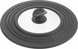 Ce couvercle universel 3-en-1 remplace trois couvercles séparés et économise ainsi de la place dans votre cuisine. Grâce au verre résistant et au rebord en silicone gris, il adhère parfaitement aux bords des casseroles et des poêles, les protège contre les dommages et garantit l’étanchéité. Le verre transparent permet de contrôler la cuisson sans soulever le couvercle.