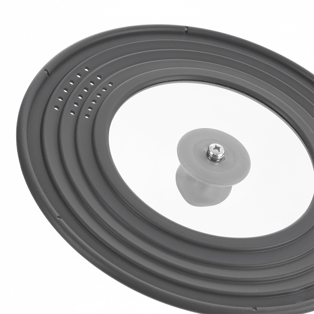 Ce couvercle universel en verre trempé et silicone résistant de couleur grise remplace trois couvercles distincts. Grâce à son rebord en silicone à paliers, il s’adapte parfaitement aux ustensiles de 24, 26 et 28 cm et protège les bords des casseroles et poêles contre les dommages. Le verre transparent permet de surveiller la cuisson sans soulever.