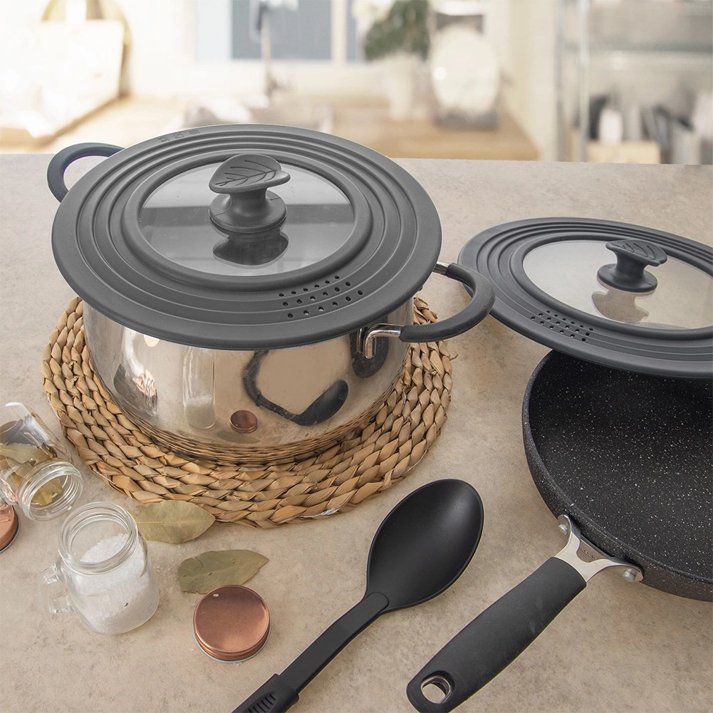 - Bord en silicone pour une étanchéité optimale et la protection des bords des ustensiles