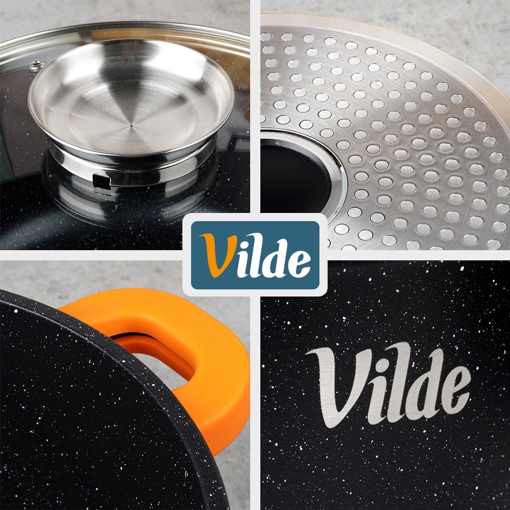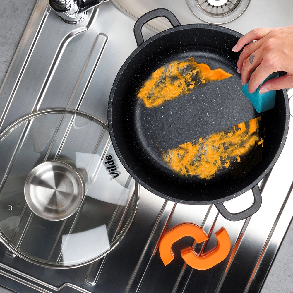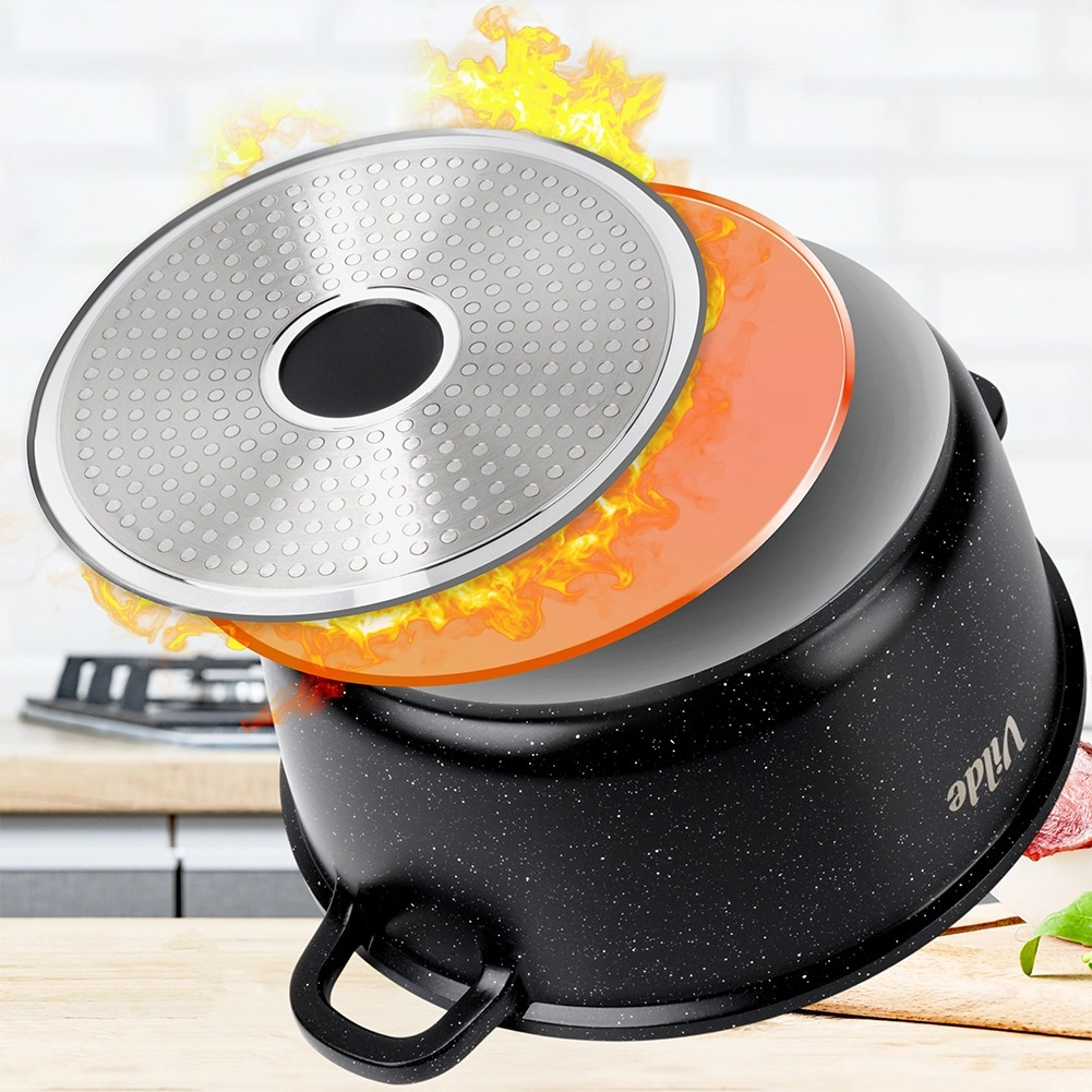 Le fond multicouche avec disque à induction assure une distribution de chaleur rapide et uniforme. Convient au gaz, à l’électricité, au vitrocéramique et à l’induction.